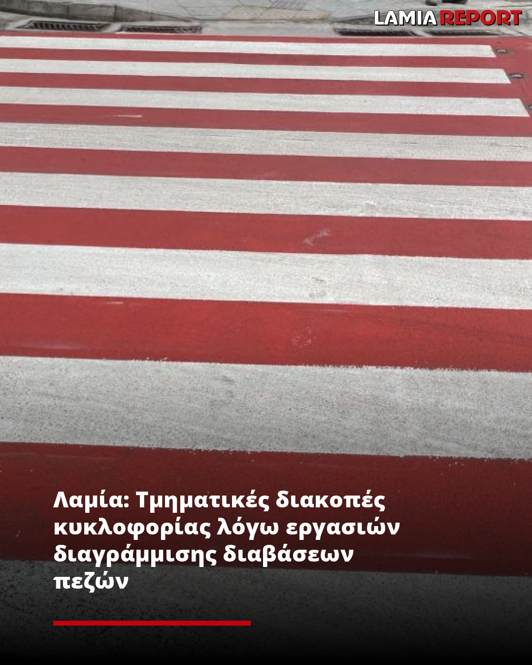 Λαμία: Τμηματικές διακοπές κυκλοφορίας λόγω εργασιών διαγράμμισης διαβάσεων πεζών