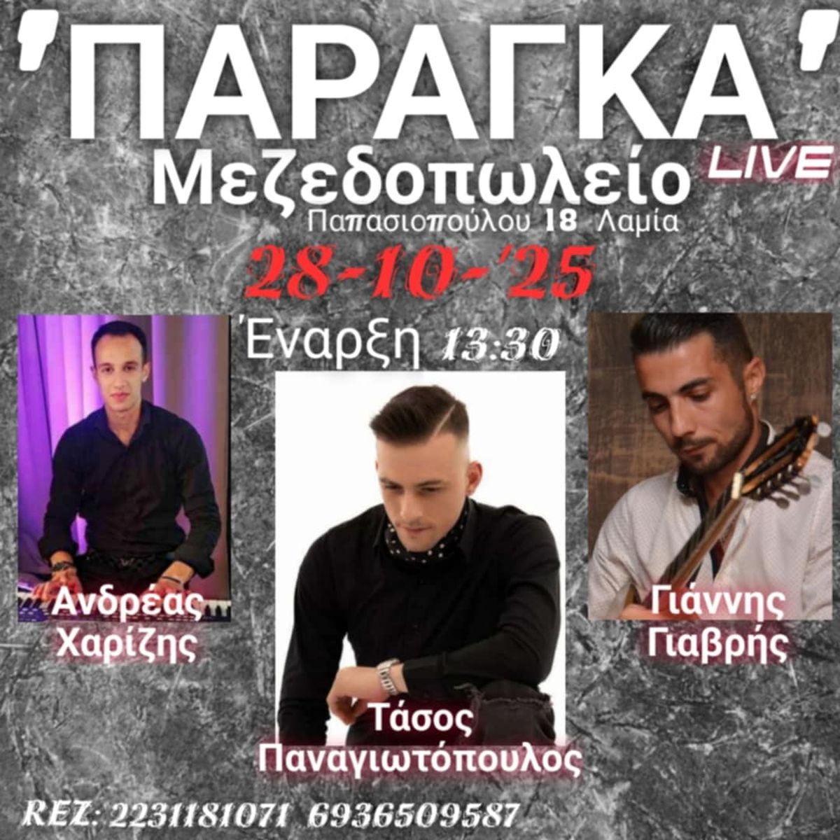 Το μεζεδοπωλείο Παράγκα, στην οδό Παπασιοπούλου 18, στα Γαλανέικα Λαμίας, γιορτάζει την 28η Οκτωβρίου με live μουσική.
