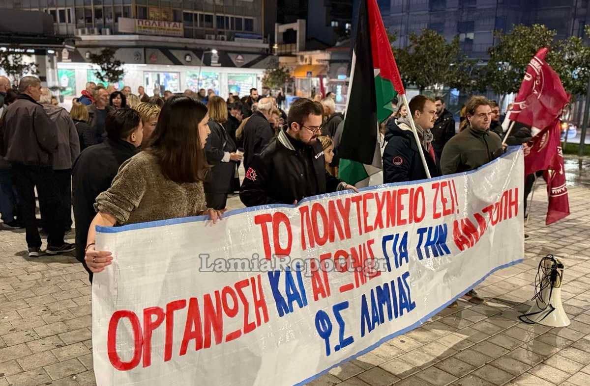 Μετά τις ομιλίες, οι συγκεντρωμένοι πραγματοποίησαν πορεία στο κέντρο της Λαμίας, ακολουθώντας τη διαδρομή από τη Ρήγα Φεραίου στην πλατεία Ελευθερίας και από κει μέσω της οδού Διάκου και την Καραγιαννοπούλου, επιστροφή στην πλατεία Πάρκου.