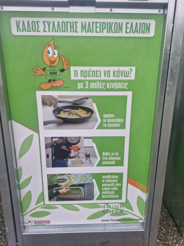 Όσοι θέλουν να συμβάλλουν στην ορθή διαχείριση χρησιμοποιημένων μαγειρικών ελαίων, μπορούν να κάνουν χρήση των ειδικών κάδων συλλογής, που τοποθετήθηκαν στα ακόλουθα 20 σημεία της Λαμίας: