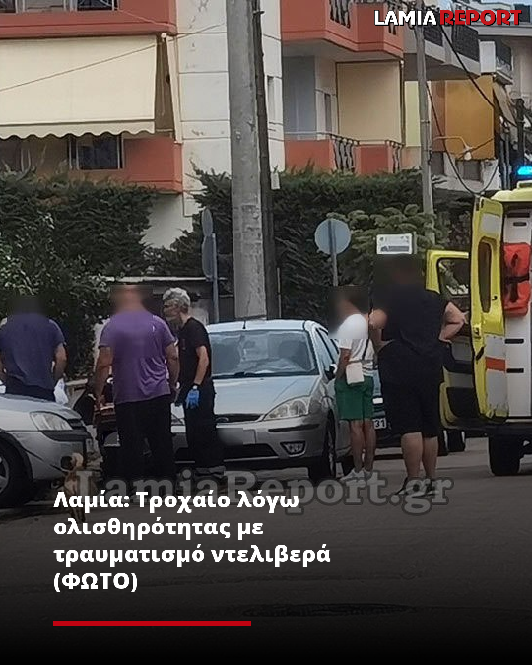 Λαμία: Τροχαίο λόγω ολισθηρότητας με τραυματισμό ντελιβερά (ΦΩΤΟ)