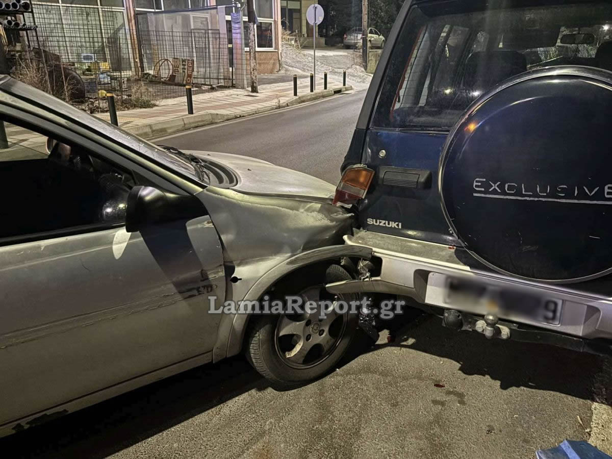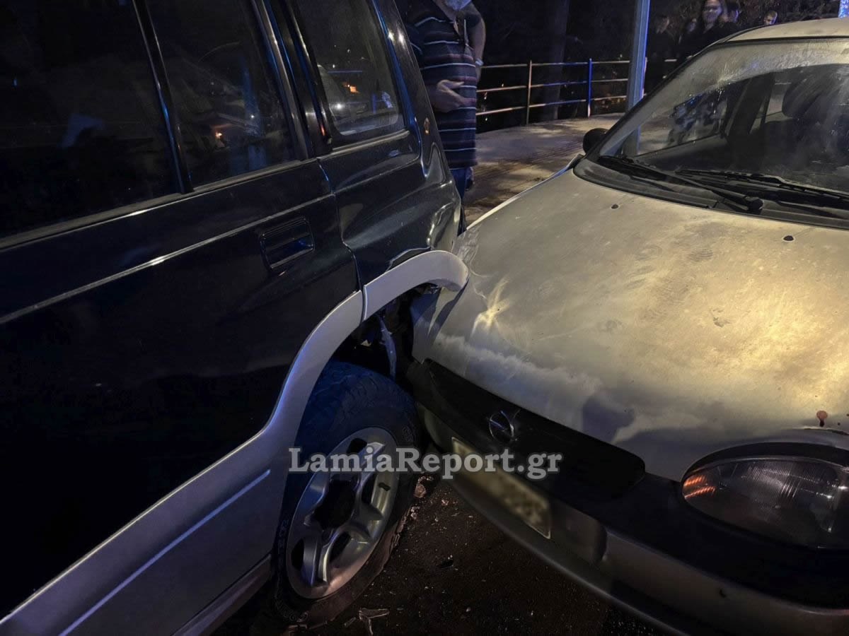 Ο οδηγός του ασημί Opel, από άγνωστη αιτία, έχασε τον έλεγχο και έπεσε πάνω στο παρκαρισμένο τζιπ, όπως βλέπετε και στις φωτογραφίες του LamiaReport.