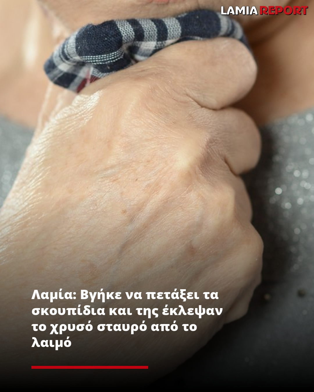 Σύμφωνα με το ρεπορτάζ του LamiaReport μια 77χρονη είδε από τη μία στιγμή στην άλλη να της κλέβουν τη χρυσή αλυσίδα με το χρυσό σταυρό από το λαιμό της και ενώ είχε βγει να πετάξει τα σκουπίδια!