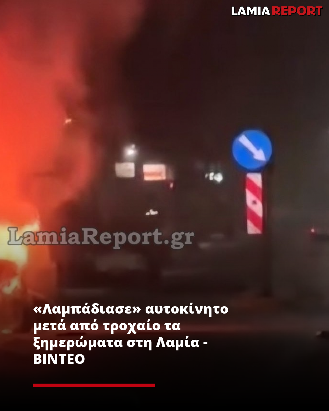 «Λαμπάδιασε» αυτοκίνητο μετά από τροχαίο τα ξημερώματα στη Λαμία - ΒΙΝΤΕΟ
