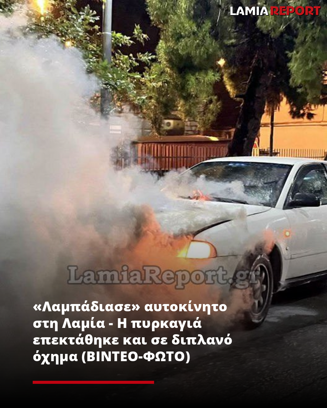 Όπως είπε στο LamiaReport ο οδηγός του, μόλις είχε σταματήσει για να πάρει το γιο του από το κολυμβητήριο, όταν διαπίστωσε ότι οι καπνοί που αναδύοντας από το καπό δεν ήταν λόγω της θερμοκρασιακής διαφοράς, αλλά από φλόγες που ξεπήδησαν ξαφνικά από τη μηχανή.