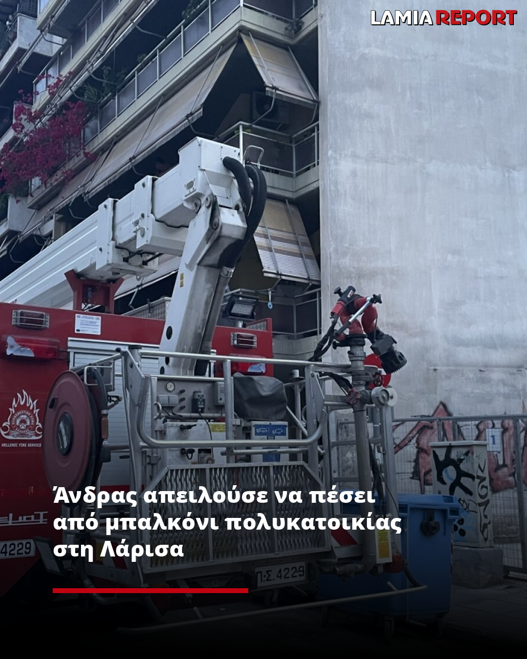 Άνδρας απειλούσε να πέσει από μπαλκόνι πολυκατοικίας στη Λάρισα
