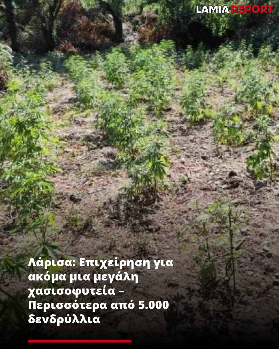 Τον Ιούλιο εντοπίστηκε, σύμφωνα με το larissanet.gr, η μεγαλύτερη χασισοφυτεία κάνναβης στην Περιφερειακή Ενότητα Λάρισας με 6.235 δενδρύλλια και εδώ και λίγες μέρες είναι σε εξέλιξη επιχείρηση στον Όλυμπο με τούς άνδρες της δίωξης να εντοπίζουν περισσότερα από 5 χιλιάδες δενδρύλλια καθιστώντας την τη δεύτερη μεγαλύτερη στην περιοχή.