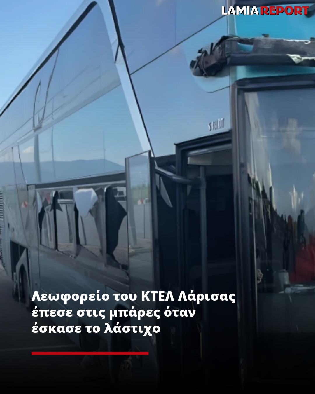 Λεωφορείο του ΚΤΕΛ Λάρισας έπεσε στις μπάρες όταν έσκασε το λάστιχο