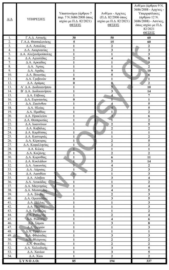 Ενδεικτικά αναφέρουμε ότι για τη Βοιωτία προβλέπονται 12, Εύβοια 12, Ευρυτανία 2 και Φωκίδα 5. Περιμένουμε να δούμε και τι θα ισχύσει με τη λειτουργία της Σχολής στην Αμφίκλεια και τις θέσεις που θα πρέπει να καλυφθούν, μέρος των οποίων θα είναι και πάλι από τις υπάρχουσες υπηρεσίες.