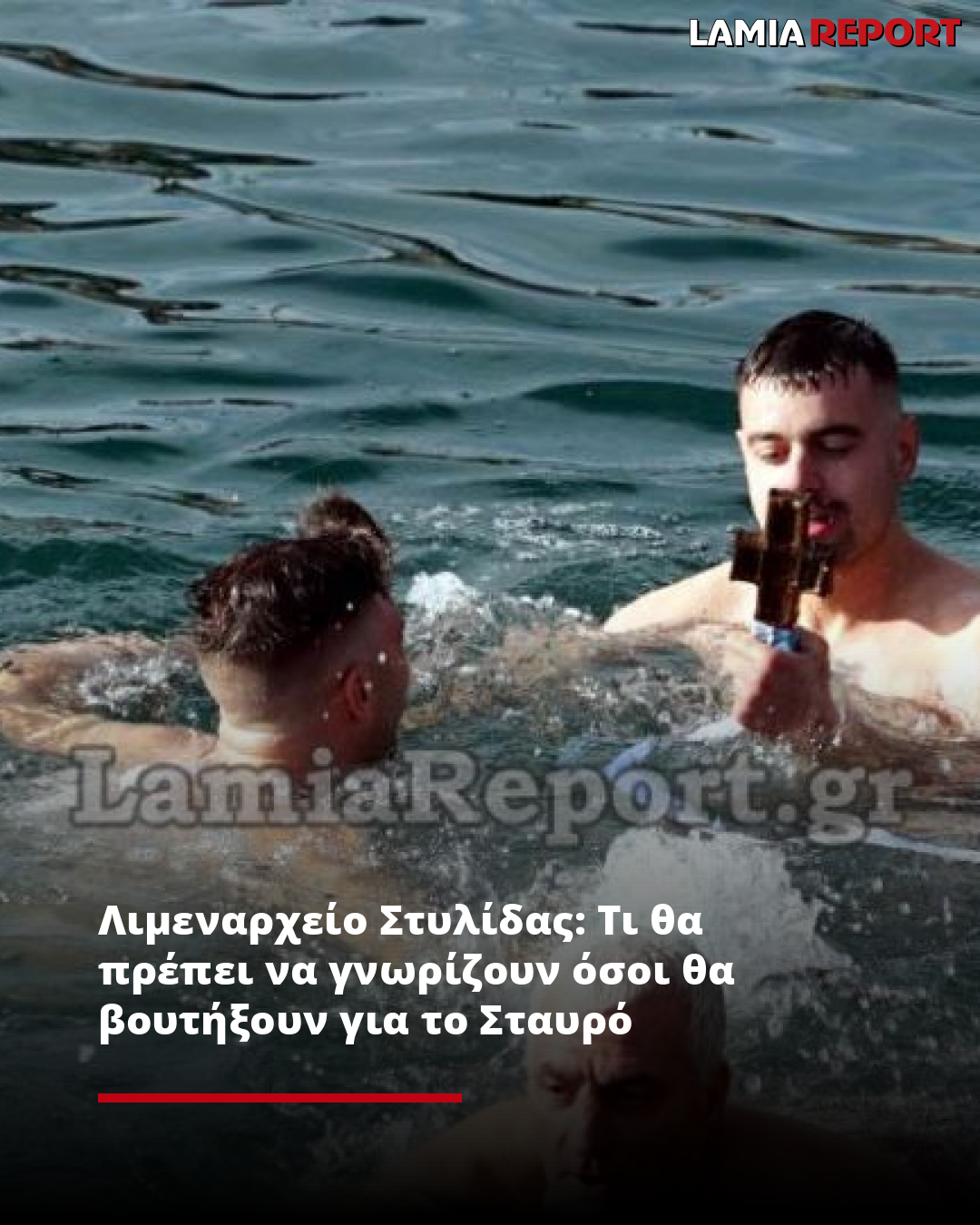 Το Λιμεναρχείο Στυλίδας ενημερώνει όσες και όσους επιθυμούν να καταδυθούν κατά την καθιερωμένη τελετή καθαγιασμού των υδάτων, για την ανεύρεση του Τίμιου Σταυρού, στο λιμάνι της Στυλίδας, την Δευτέρα 06-01-2025 και ώρα 11:00 στο πλαίσιο του εορτασμού των Θεοφανίων, ότι θα πρέπει να δηλωθεί η συμμετοχή τους και να προσκομιστούν τα απαραίτητα δικαιολογητικά σε αυτό (τηλ. 2238023998-22329) το αργότερο μέχρι την 09:00 ώρα της 6ης Ιανουαρίου 2025.