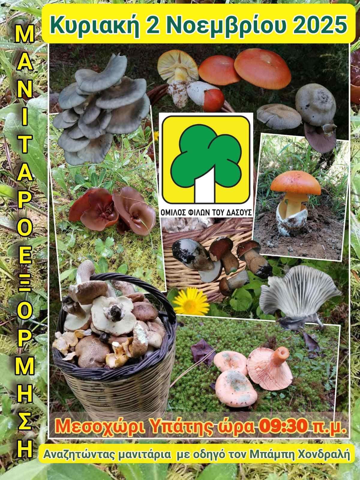 Μανιταροεξόρμηση αύριο Κυριακή στο Μεσοχώρι Υπάτης με τον Όμιλο Φίλων του Δάσους
