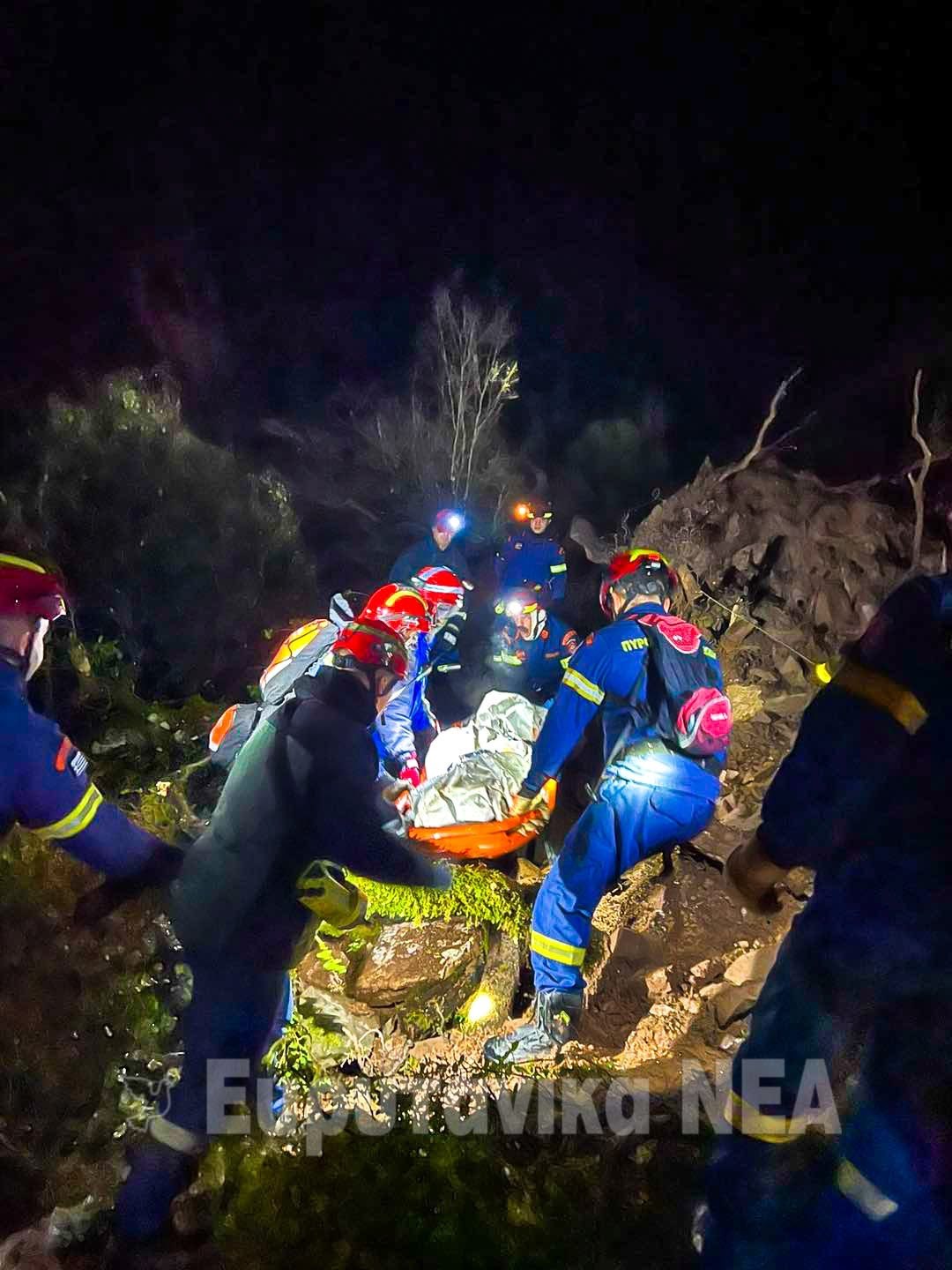 Αρχικά οι έμπειροι πυροσβέστες εντόπισαν τη σορό του άτυχου άνδρα, λίγο έξω από ότι είχε απομείνει από το ΙΧ και ακολούθως με φορείο και σχοινιά την ανέβασαν στο δρόμο για να την παραλάβει ασθενοφόρο του ΕΚΑΒ που επίσης έφτασε πολύ γρήγορα στο σημείο. Η κατάστασή της ήταν σε πολύ κακή κατάσταση, με την πτώση από τόσο μεγάλο ύψος να δικαιολογεί τη σκληρή εικόνα που αντίκρυσαν οι διασώστες.