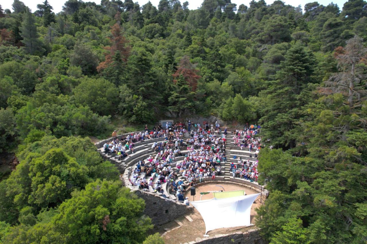 Στη συνέχεια, στο υπαίθριο θέατρο «Νίκος Παππακωνσταντίνου», επιχειρήθηκε μια πολύπλευρη και στοχευμένη προσέγγιση για την ενημέρωση των παιδιών σε θέματα διαχείρισης, διατήρησης και προστασίας των δασικών οικοσυστημάτων.