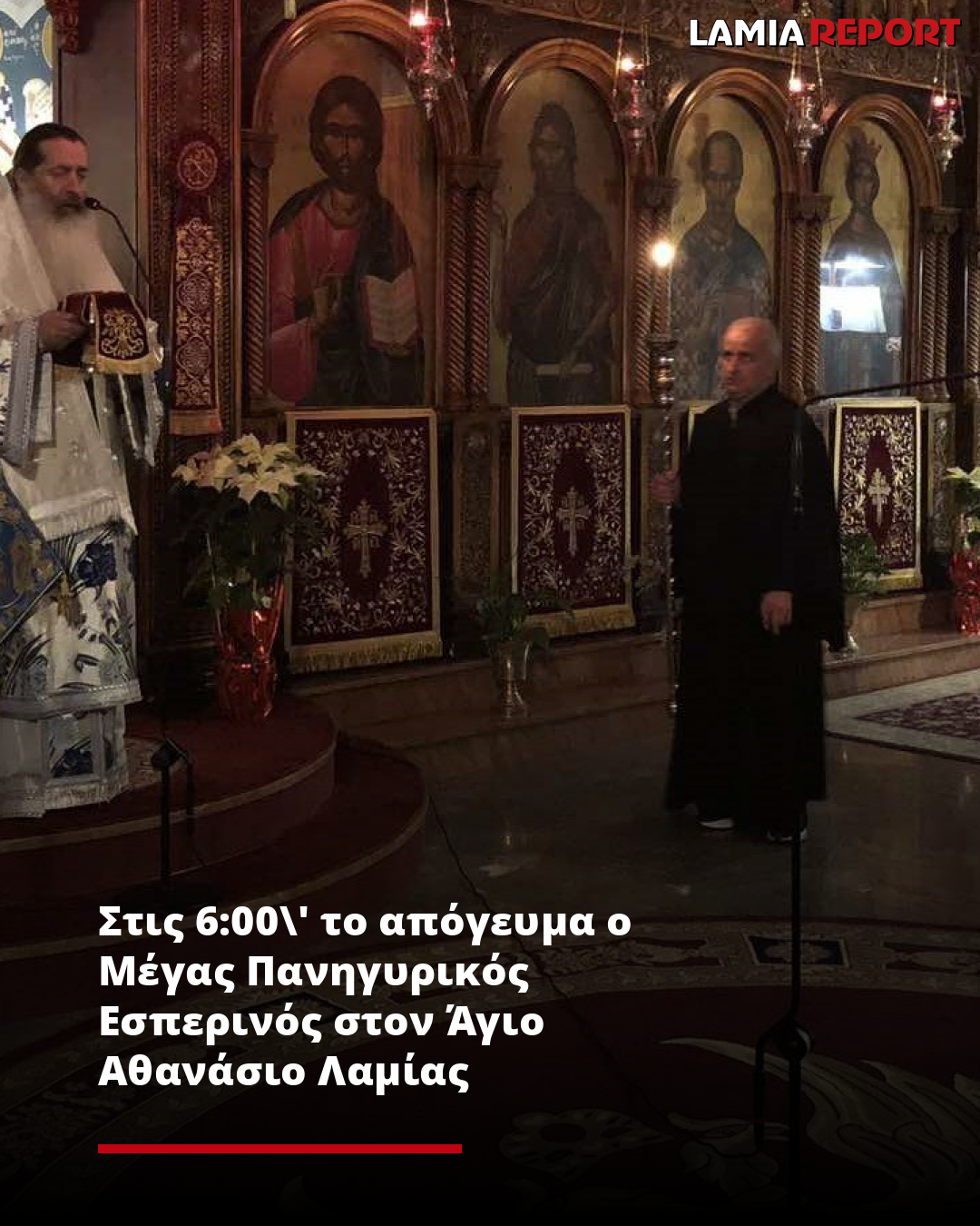 Στις 6:00' το απόγευμα ο Μέγας Πανηγυρικός Εσπερινός στον Άγιο Αθανάσιο Λαμίας