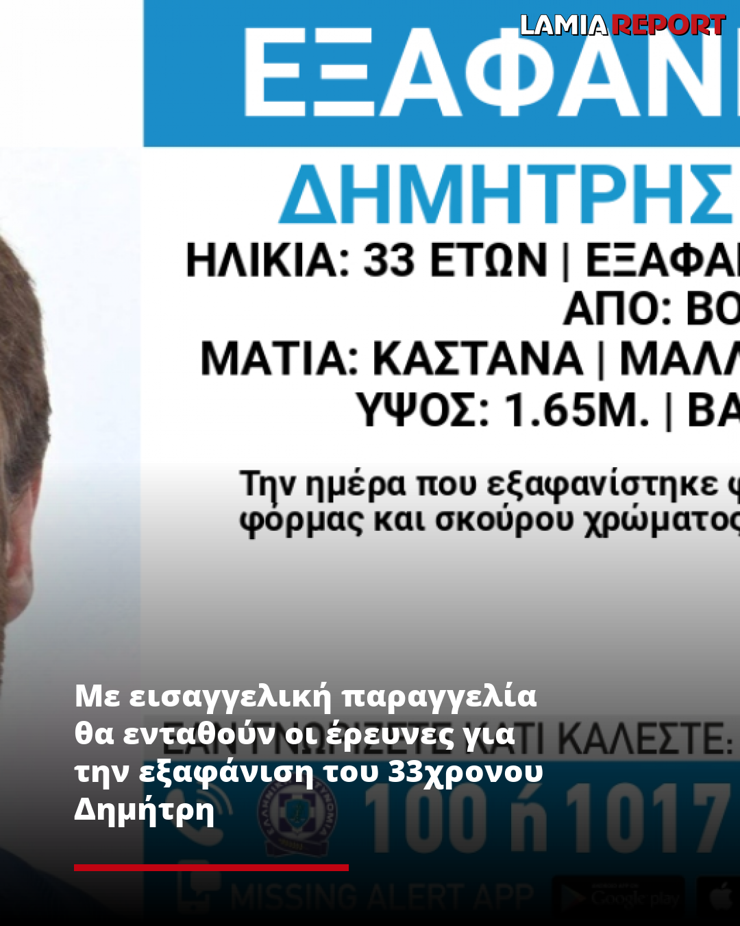 Με εισαγγελική παραγγελία θα ενταθούν οι έρευνες για την εξαφάνιση του 33χρονου Δημήτρη
