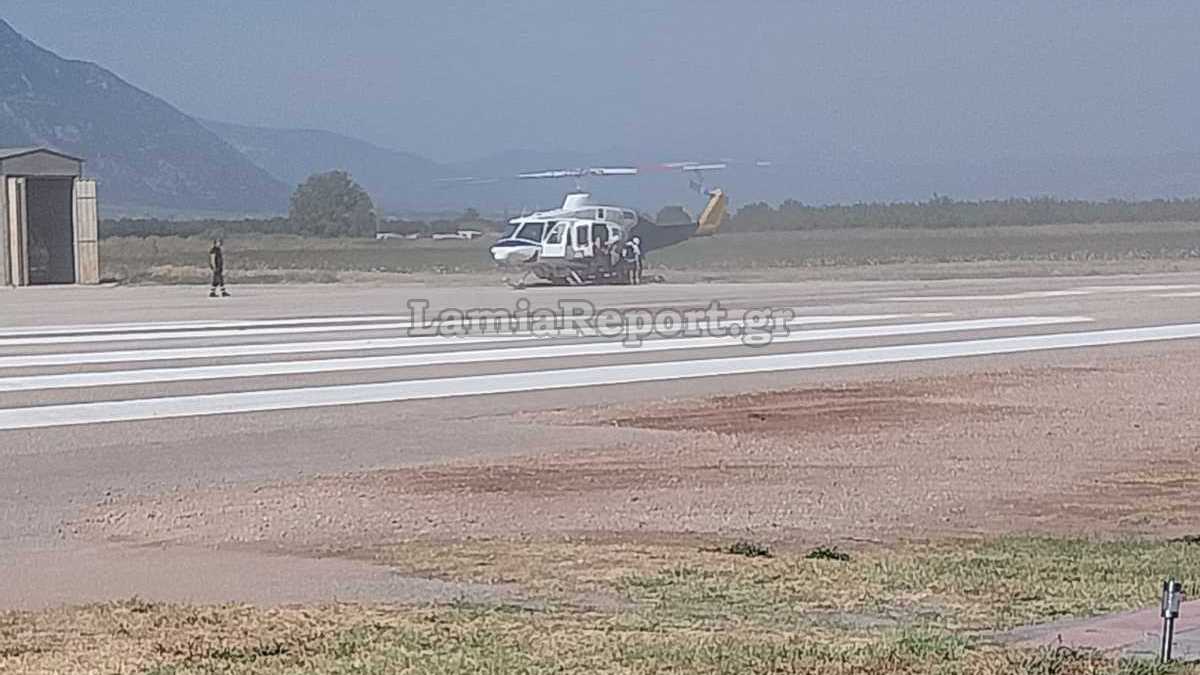 (Προσγείωση του ελικοπτέρου στην περιοχή του αεροδρομίου Λαμίας)