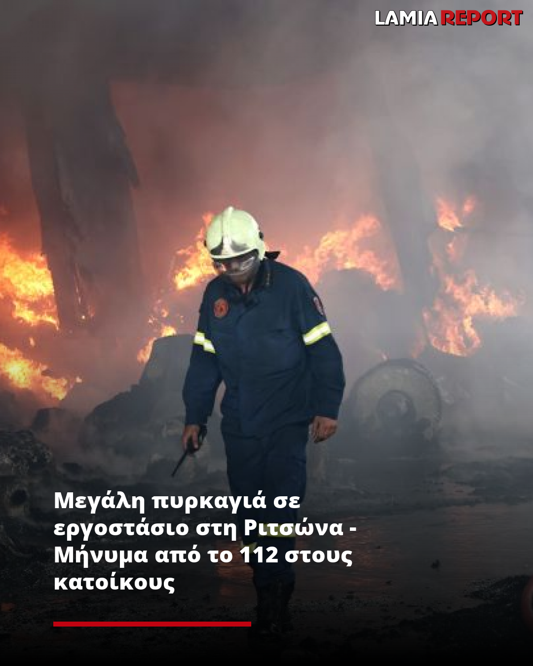 Μήνυμα από το 112 έλαβαν οι κάτοικοι στην Ριτσώνα, έπειτα από φωτιά που ξέσπασε σε εργοστάσιο το απόγευμα του Σαββάτου (15/03).