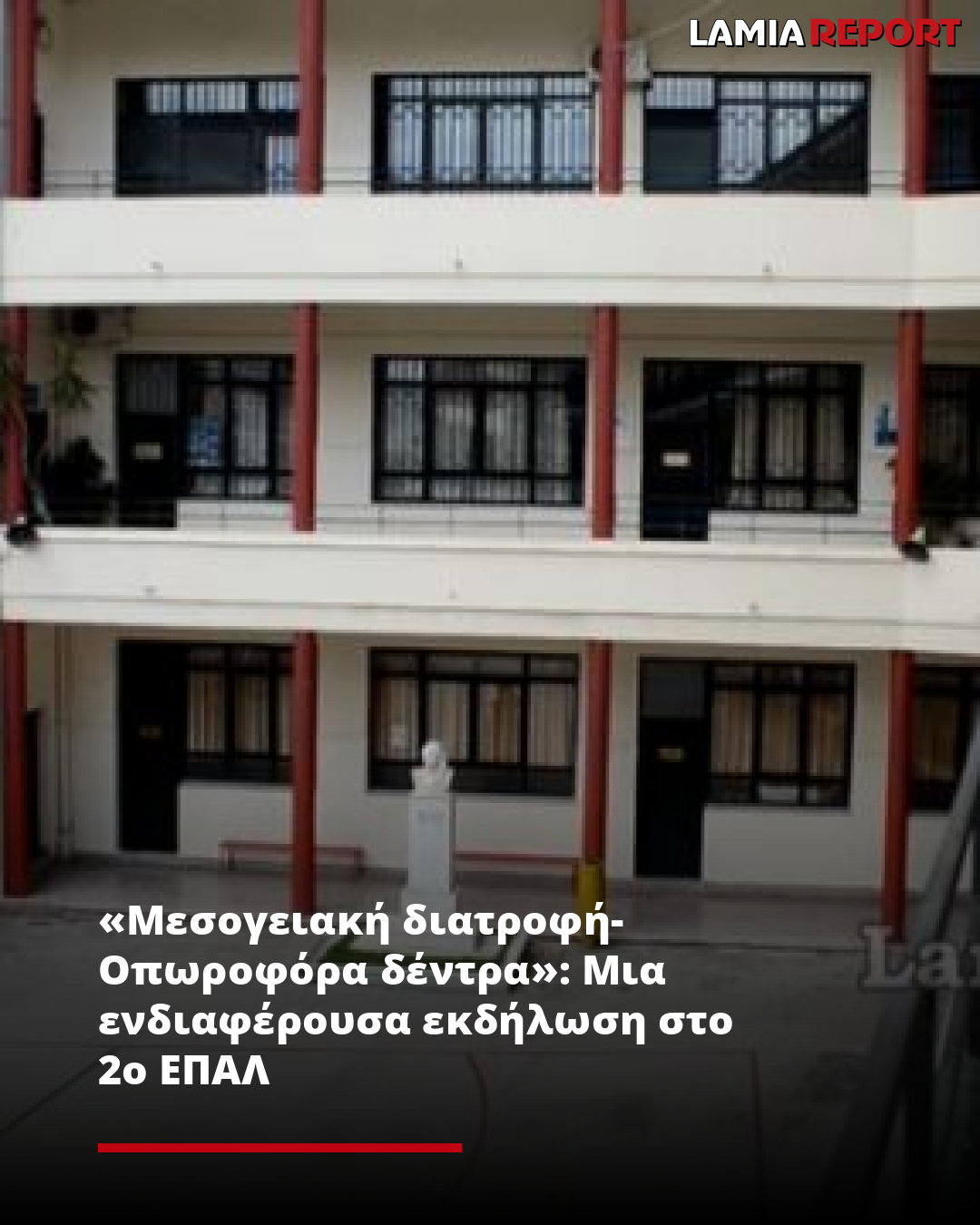 Εκδήλωση για την Μεσογειακή διατροφή και τα Οπωροφόρα δέντρα, με ομιλήτρια την Γεωπόνο και Συγγραφέα Κωνσταντίνα Στίγκα, πραγματοποιήθηκε την Πέμπτη 28 Νοεμβρίου 2024 στο χώρο του 2ου ΕΠΑΛ Λαμίας, κατόπιν πρωτοβουλίας του υπό σύσταση Συλλόγου Γονέων και Κηδεμόνων του σχολείου και ειδικότερα του μέλους του Θεοδώρου Λιακόπουλου.