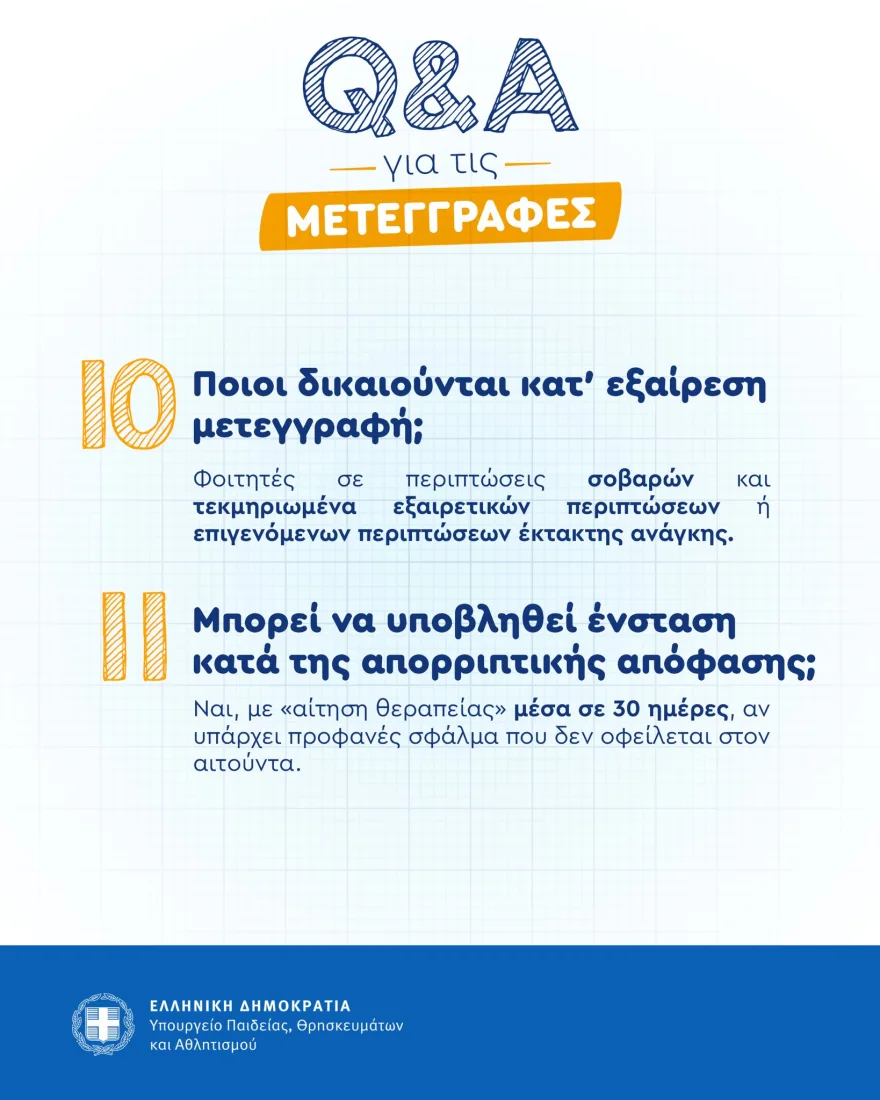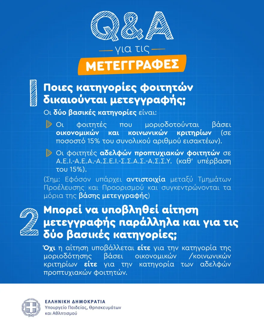 Ανοικτές οι αιτήσεις για τις μετεγγραφές φοιτητών - 10+1 ερωτήσεις και απαντήσεις για τη διαδικασία από το υπουργείο Παιδείας - Οι αιτήσεις υποβάλλονται μόνο ηλεκτρονικά