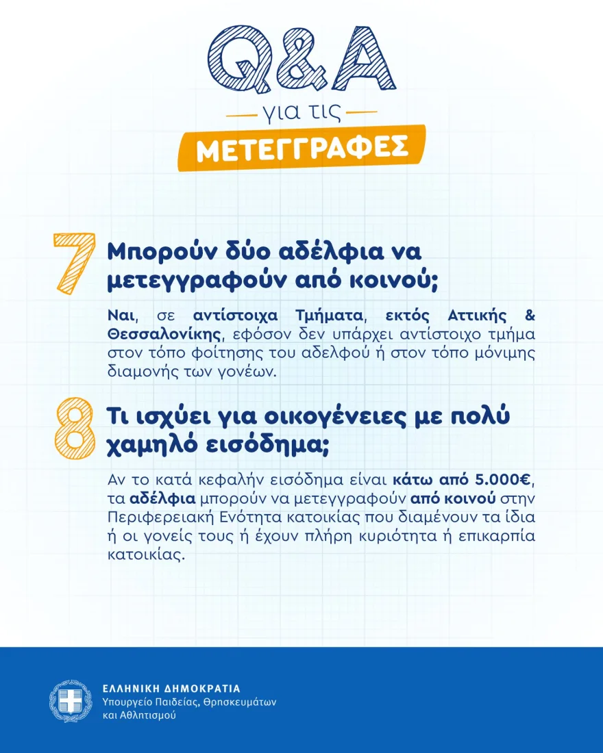 Στόχος του Υπουργείου Παιδείας είναι οι μετεγγραφές να ολοκληρωθούν πριν από την έναρξη των μαθημάτων, ώστε οι ενδιαφερόμενοι να ενταχθούν εγκαίρως στα νέα τμήματα.