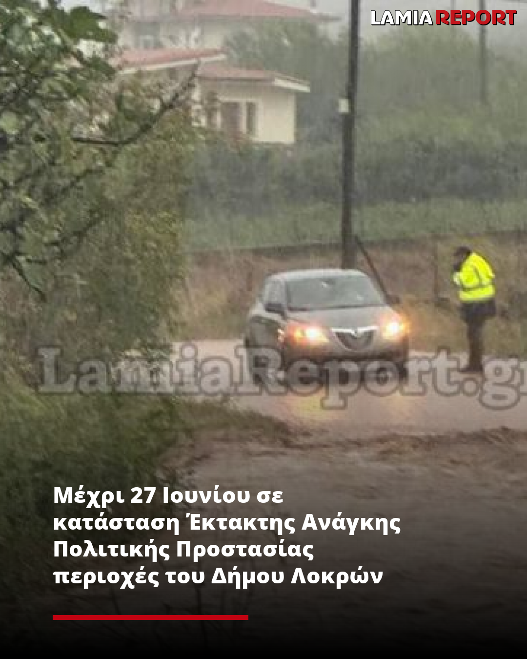 Μέχρι 27 Ιουνίου σε κατάσταση Έκτακτης Ανάγκης Πολιτικής Προστασίας περιοχές του Δήμου Λοκρών