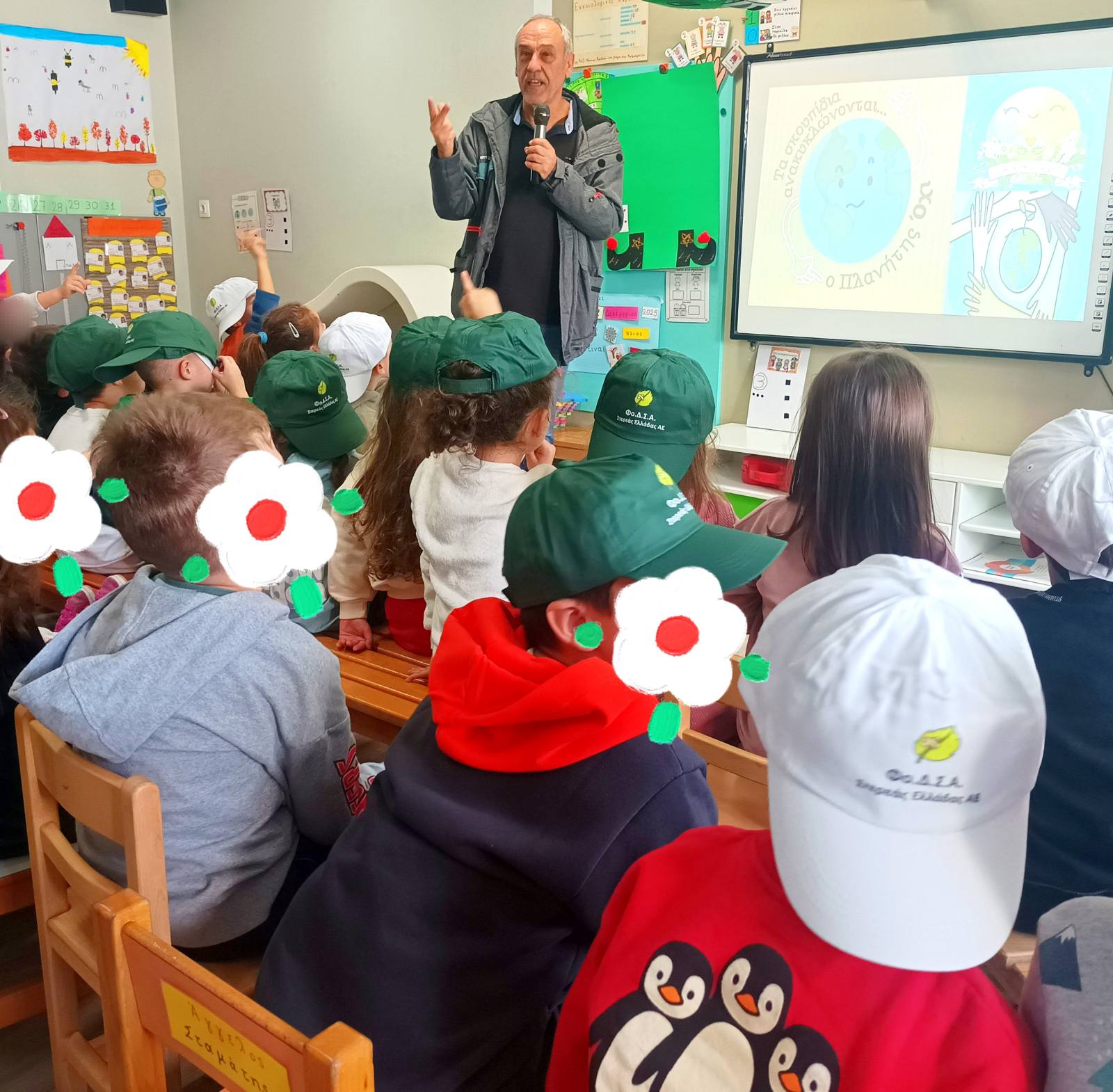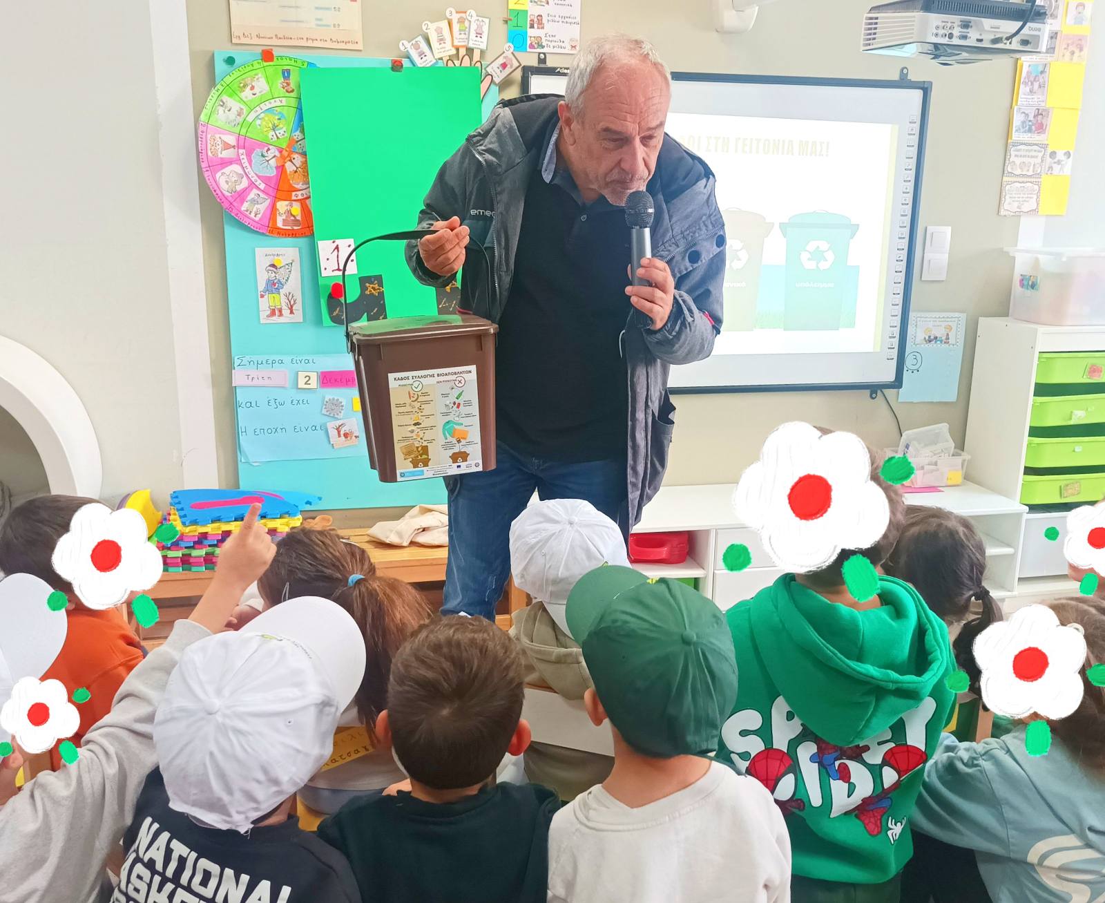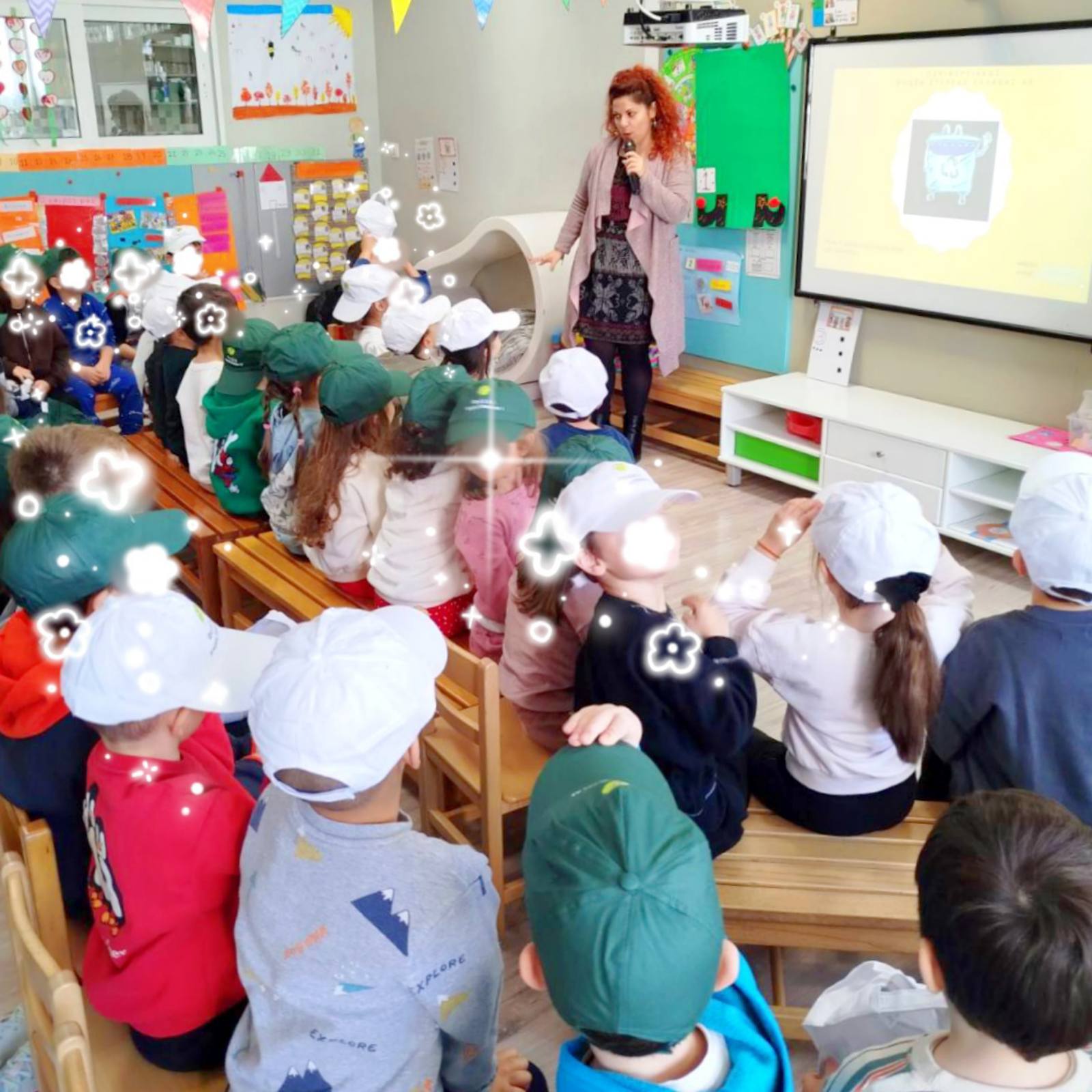 Τα παιδιά και οι εκπαιδευτικοί παρακολούθησαν με ενθουσιασμό μια διαδραστική παρουσίαση με κινούμενα σχέδια, μαθαίνοντας για τη σωστή διαχείριση απορριμμάτων, την ανακύκλωση, την κομποστοποίηση και την επαναχρησιμοποίηση. Το περιβάλλον «μίλησε» στα παιδιά, ζητώντας τη βοήθειά τους, ενώ ακόμα και οι κάδοι είχαν φωνή, ζητώντας να τους «ταΐσουμε» με τα σωστά υλικά!