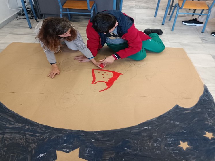 Έτσι, κατά την έναρξη του μηνός Δεκεμβρίου στα πλαίσια των πολιτιστικών προγραμμάτων «Επιστημών και Τεχνών… Γεύσεις» (Υπεύθυνη : κ. Φουντούκη Μαρία) και «Άνεμος Λόγου στην Τέχνη και στην Παράδοση» (Υπεύθυνη: κ. Μαργαρώνη Ελένη), μέσα από μια στοχευμένη διαθεματική δράση βιωματικού χαρακτήρα σε συνεργασία με το Εργαστήριο Εικαστικών και την κα Μαυροειδή Ευαγγελία, οι μαθητές της Γλωσσικής Διδασκαλίας μετατράπηκαν για αρκετές διδακτικές ώρες σε αγιογράφους, το σκοτεινό σπήλαιο της αμαρτίας του κόσμου φωτίζεται από τον Θεάνθρωπο και η Αγιοκατοίκητη φάτνη Του μετατρέπεται σε σημείο συνάντησης όλων των κοινωνικών τάξεων, άσημων και μορφωμένων, πένητων και πλουσίων, μεταφέροντας στην αγκαλιά του Θεού το «Δόξα εν υψίστοις» από όποιο στόμα και φωνή και αν προέρχεται, από όποια ύπαρξη κι αν ψάλλεται!