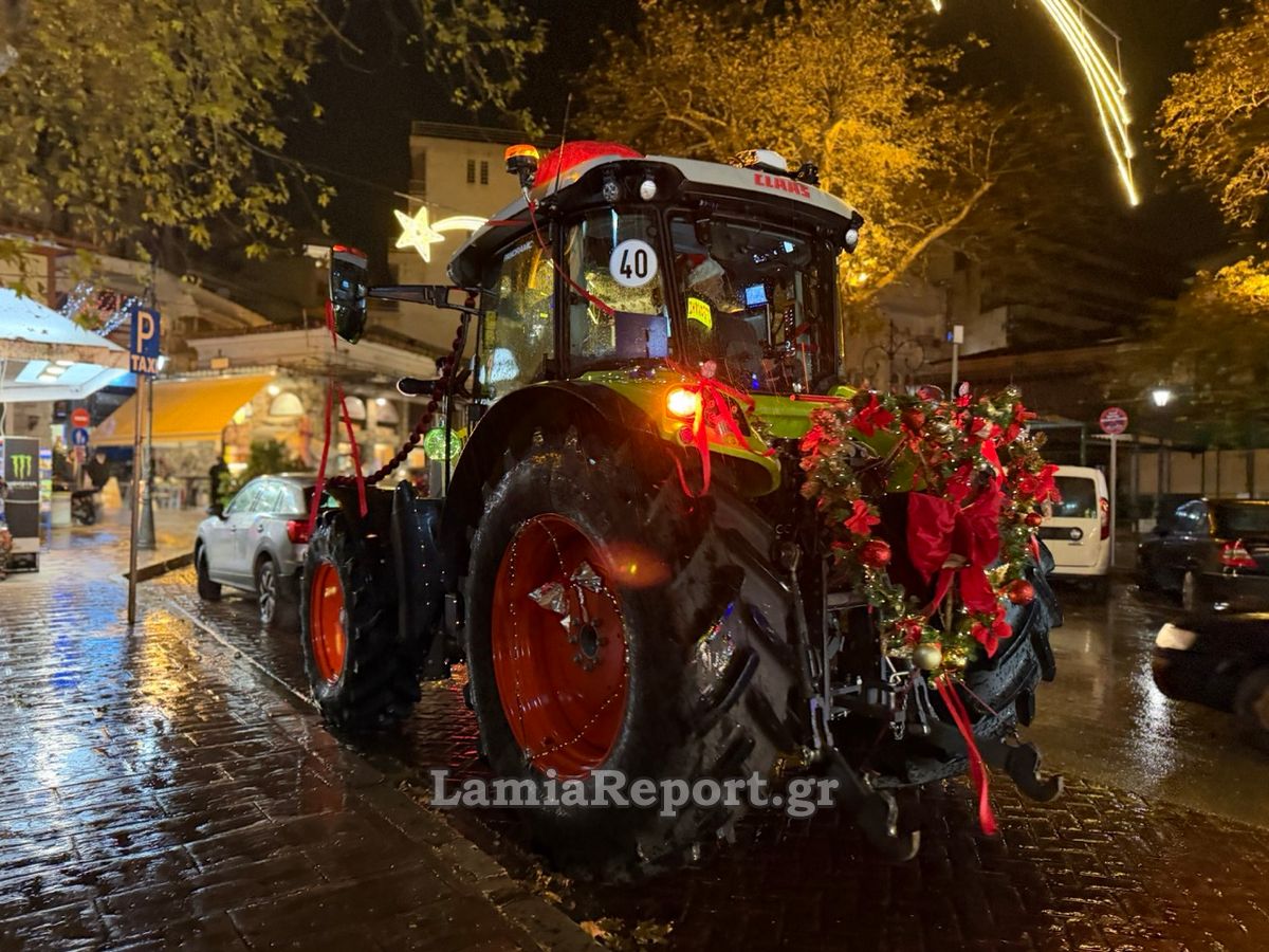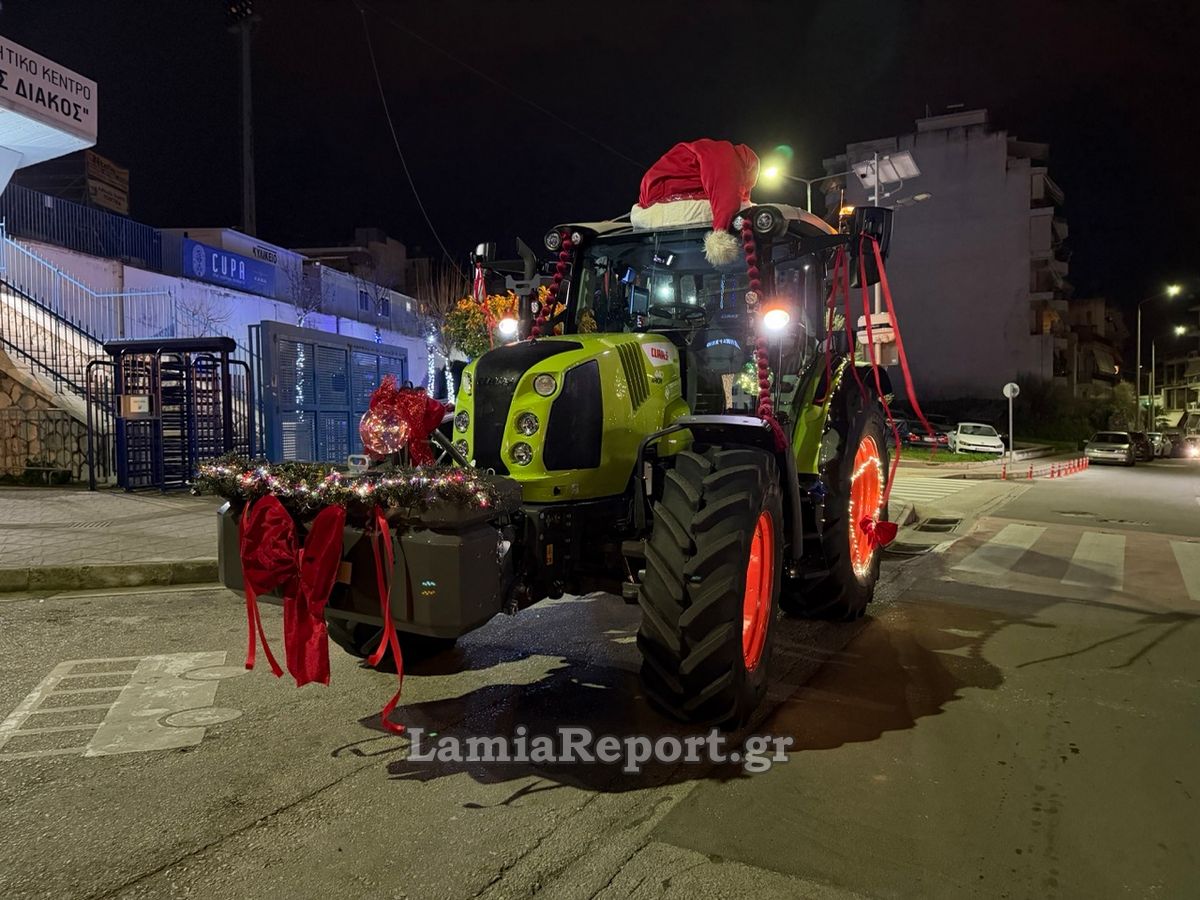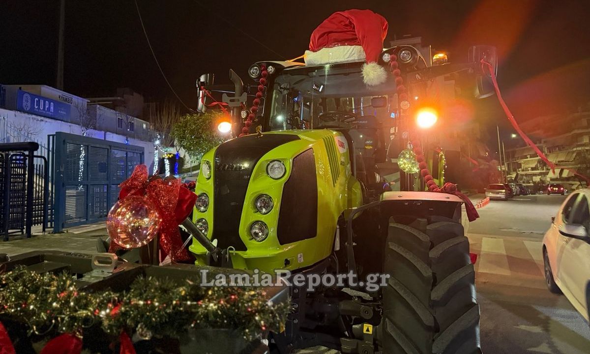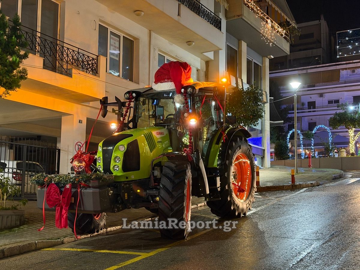 «Μπλόκο αγάπης» με στολισμένο τρακτέρ στη γιορτινή Λαμία (ΒΙΝΤΕΟ-ΦΩΤΟ)