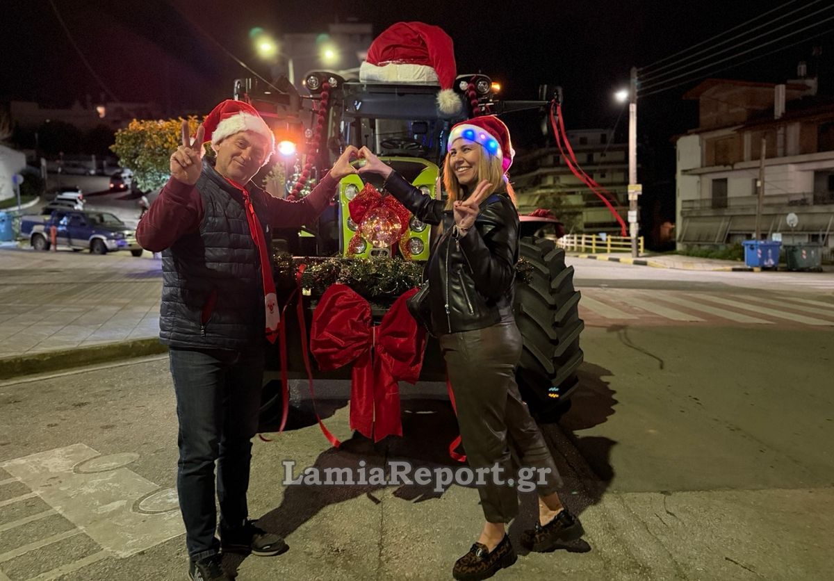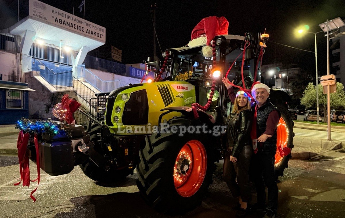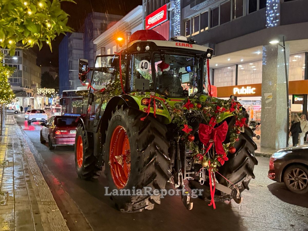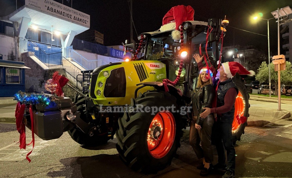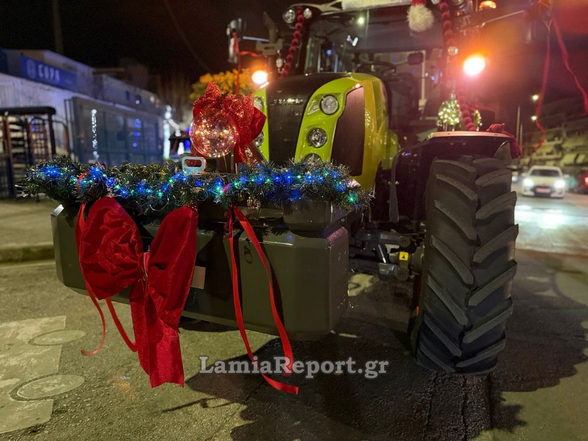 «Μπλόκο αγάπης» με στολισμένο τρακτέρ στη γιορτινή Λαμία (ΒΙΝΤΕΟ-ΦΩΤΟ)