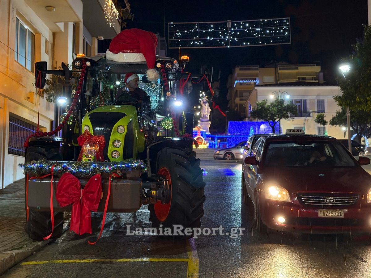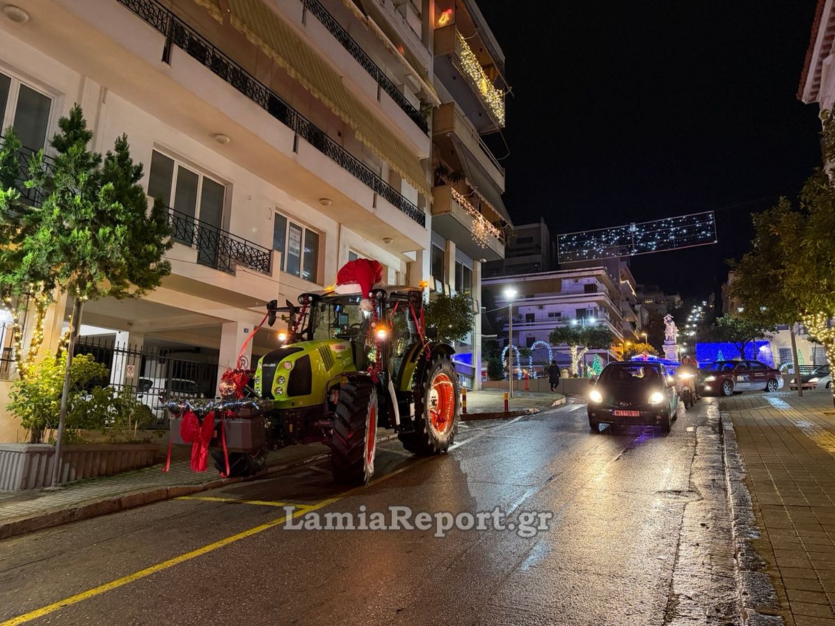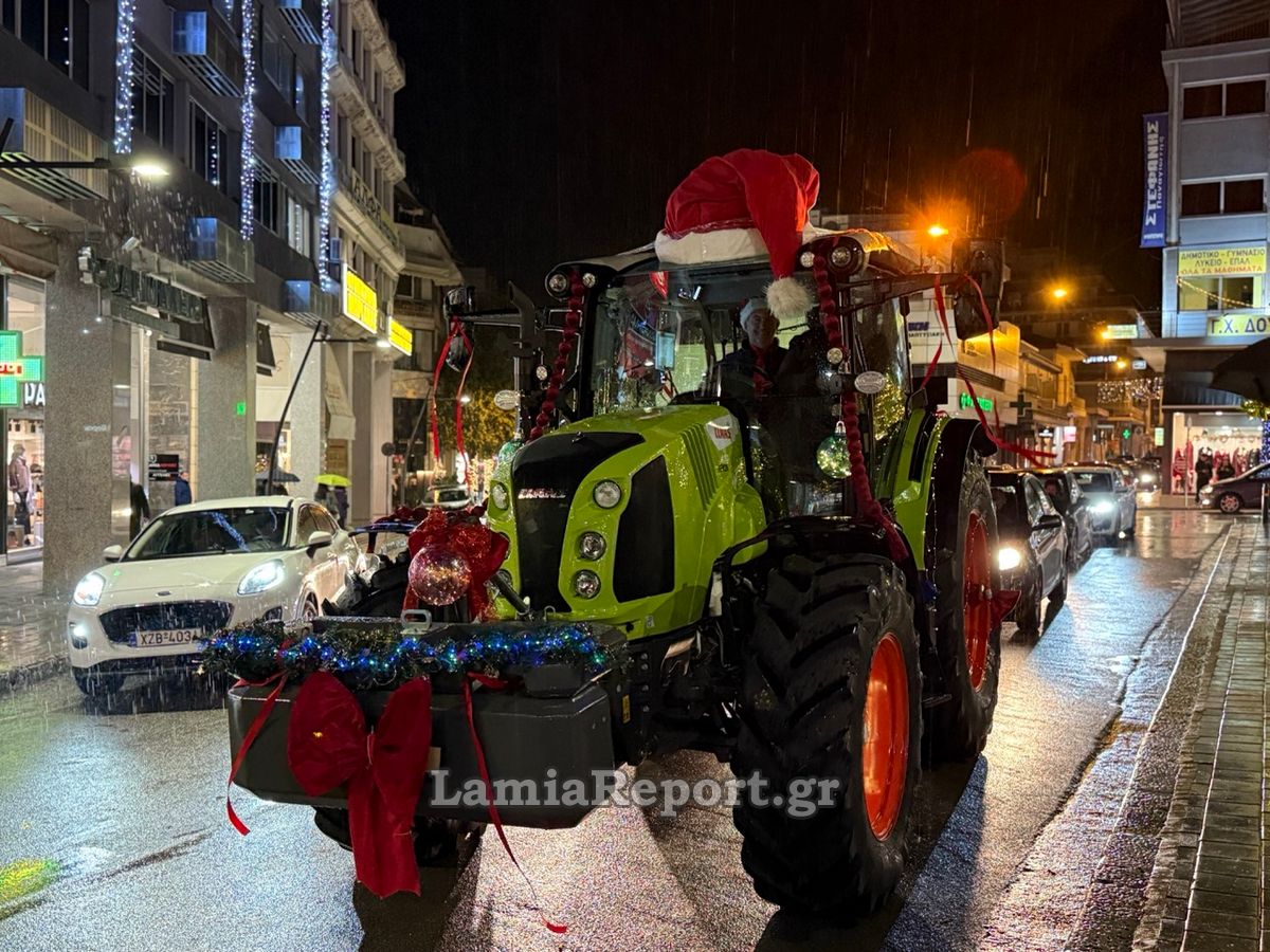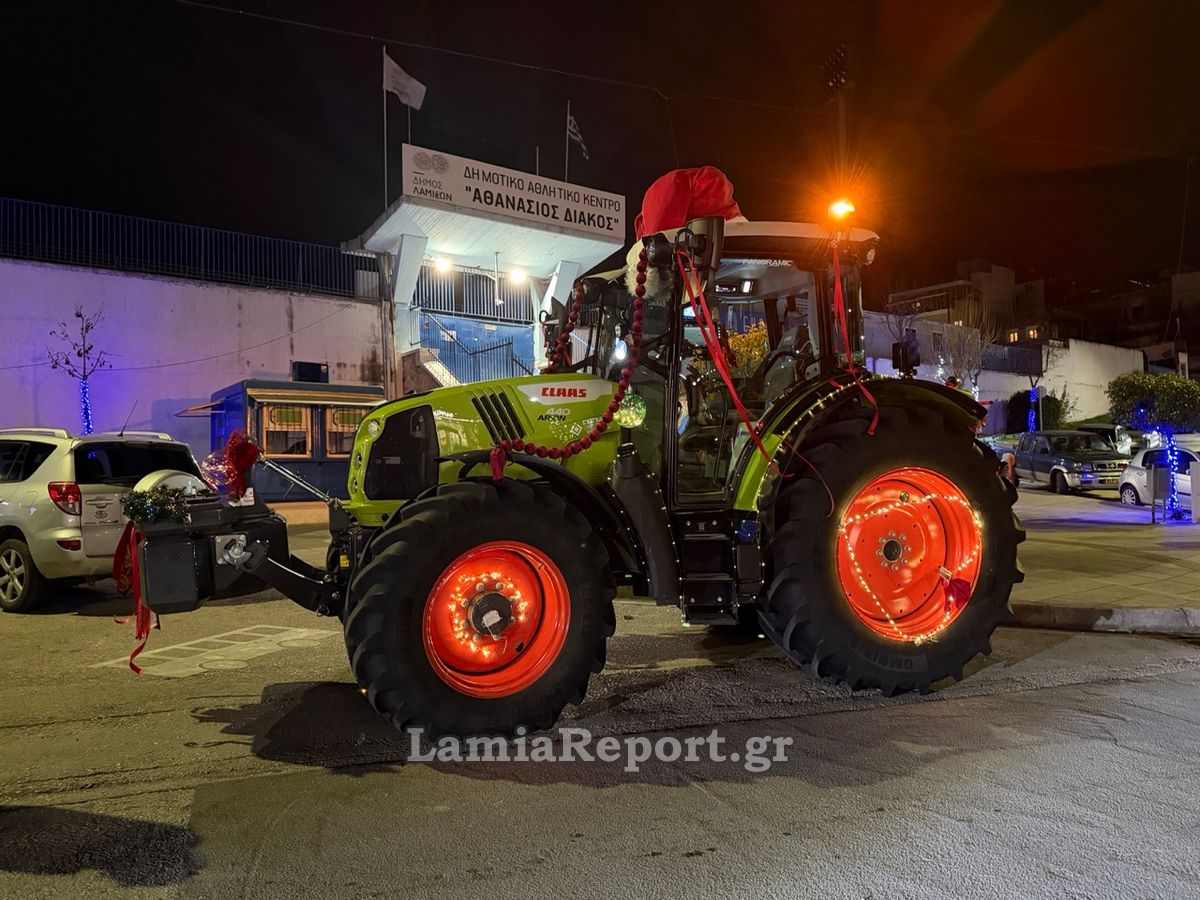 «Μπλόκο αγάπης» με στολισμένο τρακτέρ στη γιορτινή Λαμία (ΒΙΝΤΕΟ-ΦΩΤΟ)