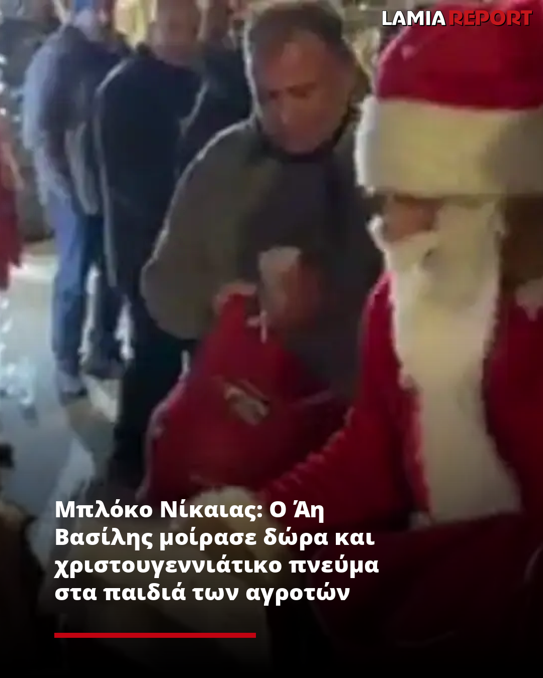 Ντυμένος Άη Βασίλης με σακούλα γεμάτη δώρα, προσέφερε, όπως αναφέρει το newsit.gr, όμορφες εικόνες και δώρα στα παιδιά των αγροτών στο μπλόκο της Νίκαιας. «Καλά Χριστούγεννα» ανέφερε καθώς πλησίαζε τη σκηνή των κτηνοτρόφων της Μαγνησίας.