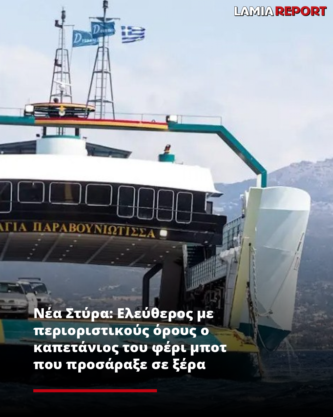 Μετά την απολογία του για το σοβαρό ατύχημα το οποίο έγινε στα Νέα Στύρα, όπου φέρι μποτ προσάραξε σε ξέρα προκαλώντας ταλαιπωρία για δεκάδες επιβάτες, ο καπετάνιος του πλοίου αφέθηκε ελεύθερος.