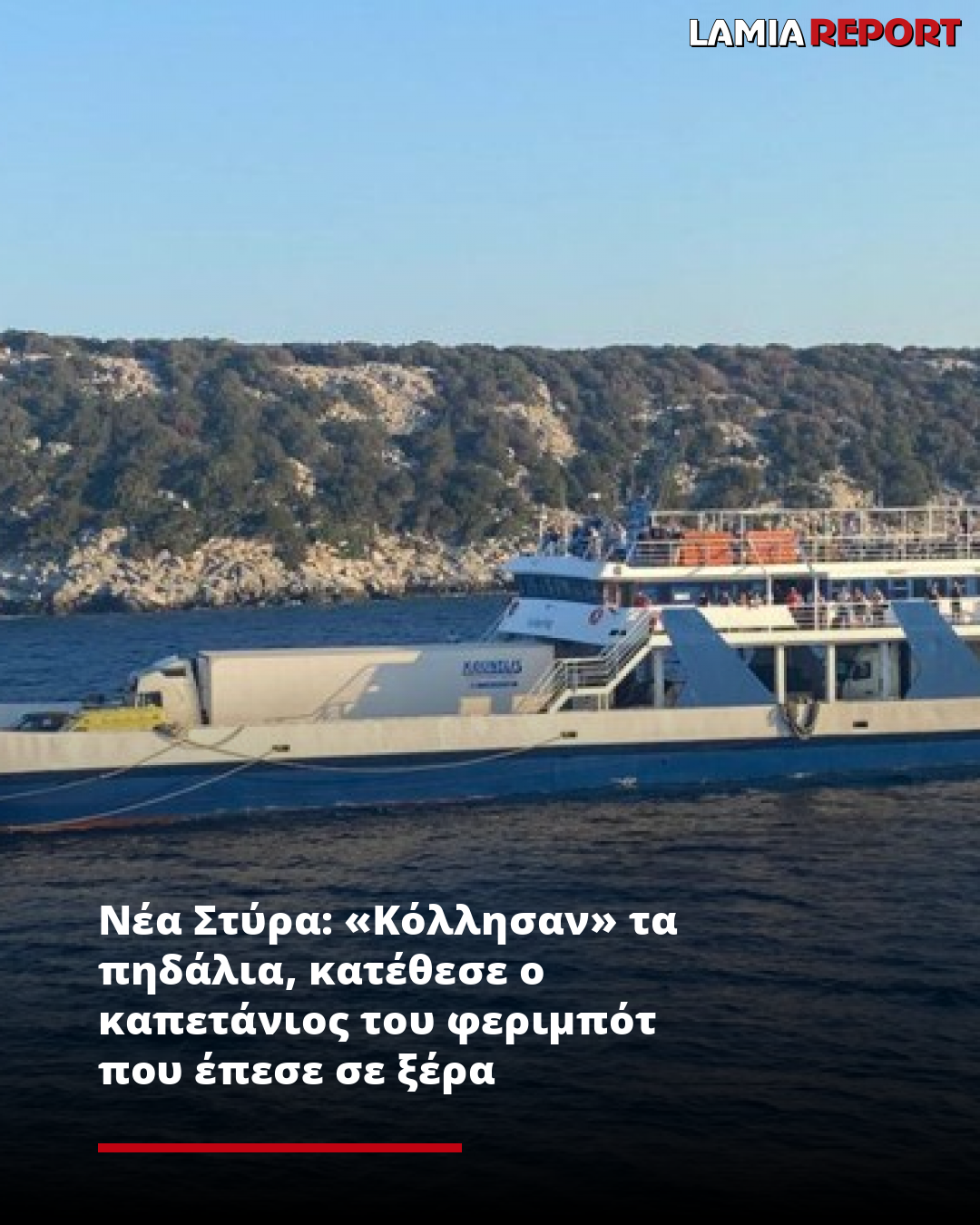 Τον ισχυρισμό ότι «κόλλησαν» τα πηδάλια επικαλέστηκε κατά την απολογία του στον εισαγγελέα Χαλκίδας την Τετάρτη (06.08.2025) ο καπετάνιος του φεριμπότ που προσάραξε χθες σε ξέρα στα Νέα Στύρα Ευβοίας.