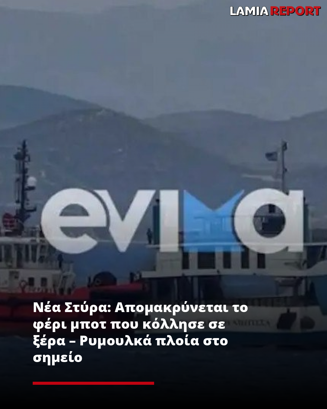 Ρυμουλκά πλοία έχουν ήδη πλεύσει στο σημείο και προσπαθούν να πλησιάσουν το πλοίο για να διευκολυνθεί η επιχείρηση αποκόλλησης του φέρι μποτ που κόλλησε στη βραχονησίδα Γλάρος έξω από τα Νέα Στύρα από το απόγευμα της Τρίτης.