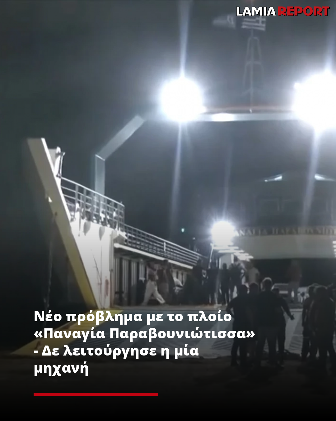 Τις βραδινές ώρες της Κυριακής (14/9/25), ενημερώθηκε η Λιμενική Αρχή των Νέων Στύρων από τον Πλοίαρχο του επιβατηγού - οχηματαγωγού (Ε/Γ-Ο/Γ) πλοίου “ΠΑΝΑΓΙΑ ΠΑΡΑΒΟΥΝΙΩΤΙΣΣΑ” Ν.Π. 12433 ότι παρουσιάστηκε αδυναμία εκκίνησης της αριστερής κύριας μηχανής, μετά την ολοκλήρωση της φόρτωσης του πλοίου.