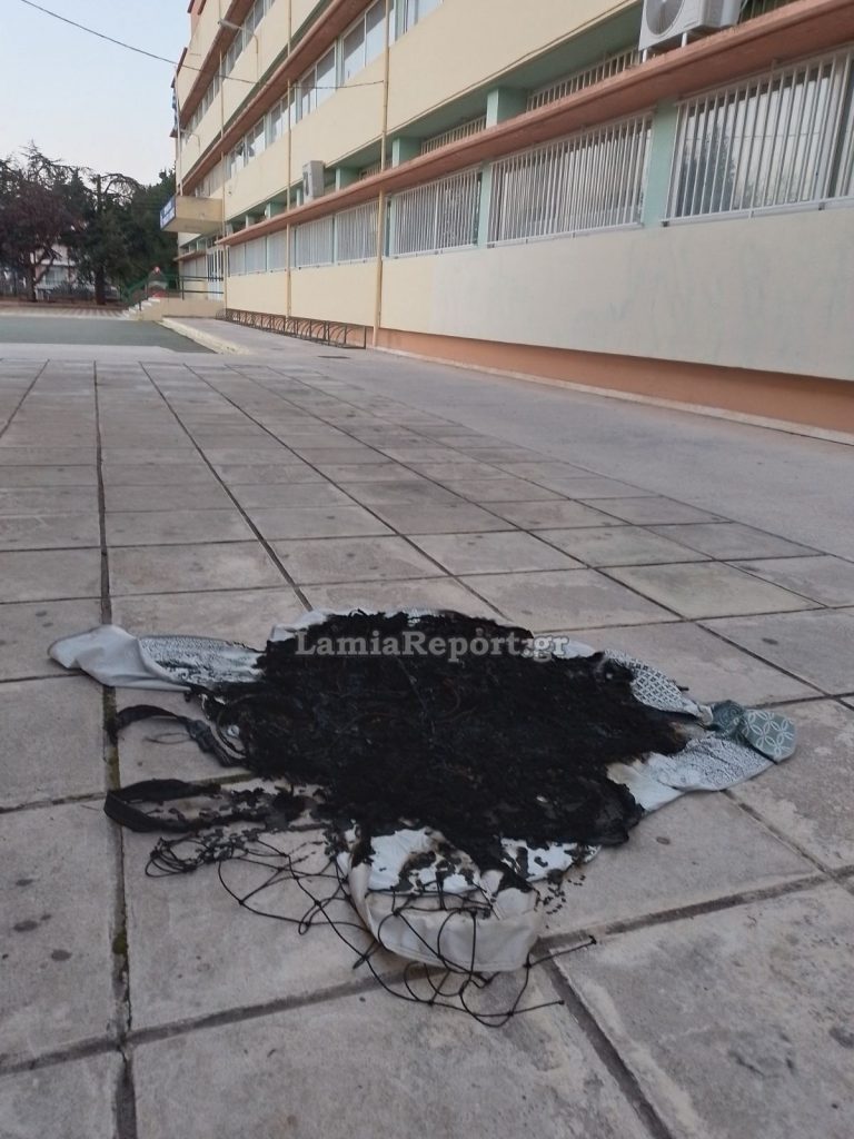 Την «υπογραφή» τους άφησαν άγνωστοι δράστες στο προαύλιο χώρο του 4ου Πειραματικού Γυμνασίου Λαμίας, βάζοντας φωτιά σε φιλέ το οποίο είχαν αφαιρέσει προηγουμένως από το προαύλιο του 4ου Πειραματικού Λυκείου.