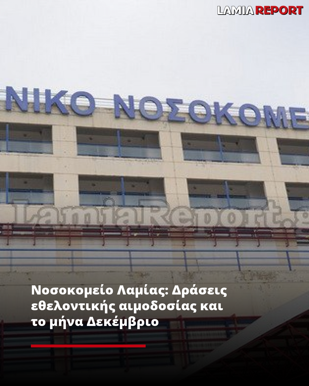 Νοσοκομείο Λαμίας: Δράσεις εθελοντικής αιμοδοσίας και το μήνα Δεκέμβριο
