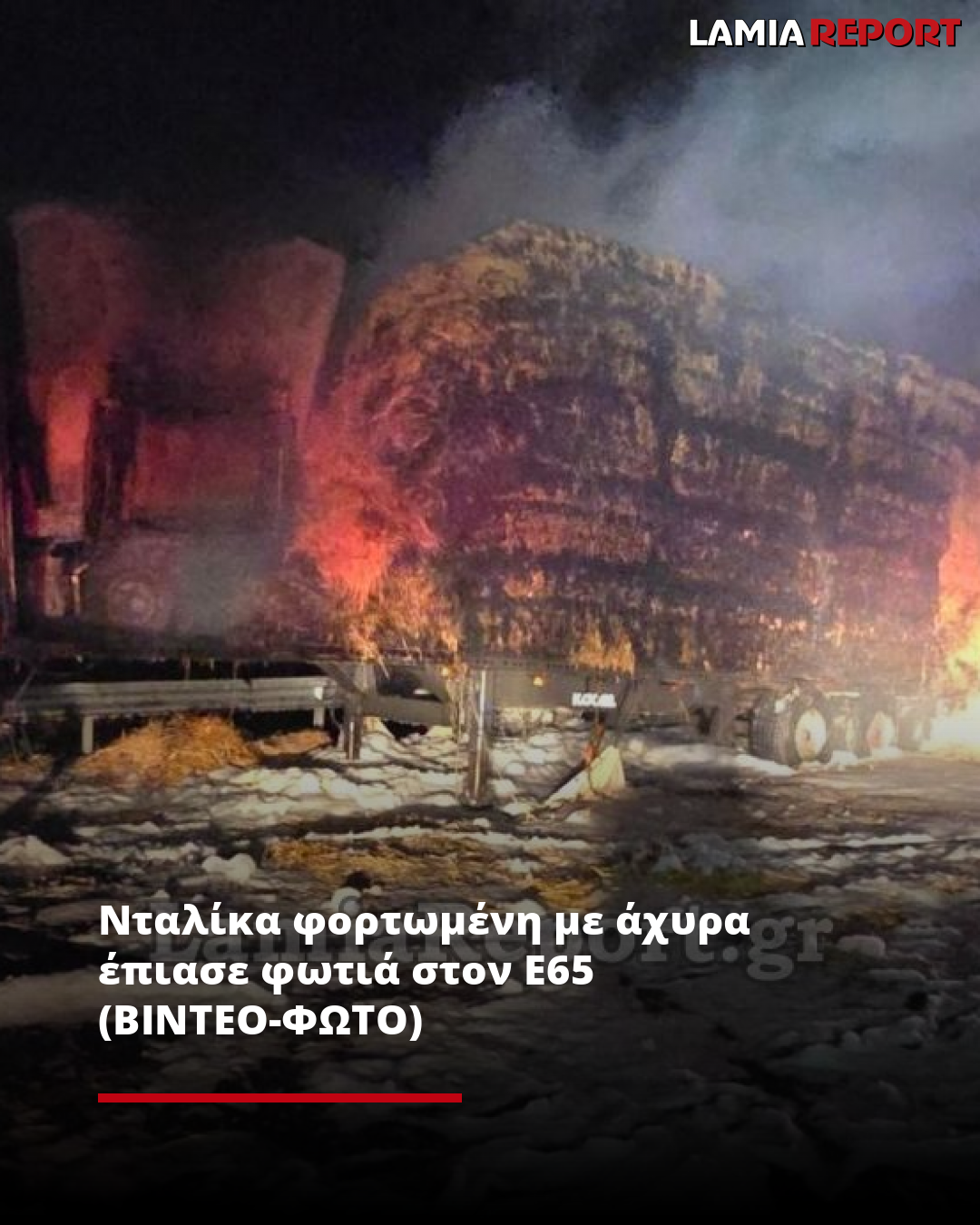 Νταλίκα φορτωμένη με άχυρα έπιασε φωτιά στον Ε65 (ΒΙΝΤΕΟ-ΦΩΤΟ)