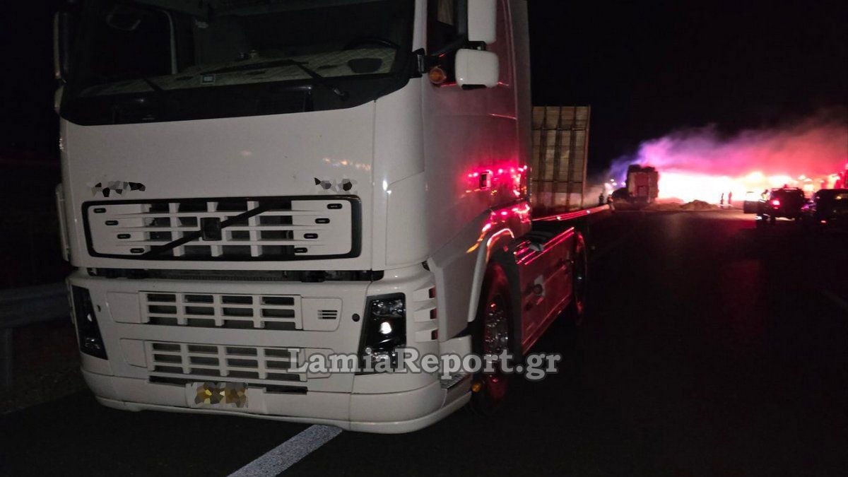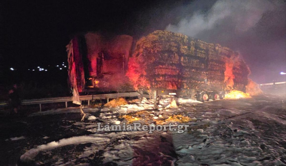 Ο ίδιος πρόλαβε να ξεκοτσάρει το φορτίο και να γλυτώσει τον τράκτορα, ωστόσο το φορτίο παραδόθηκε στις φλόγες. Ισχυρές δυνάμεις της Πυροσβεστικής έσπευσαν στο σημείο για να σβήσουν την πυρκαγιά, ενώ πληρώματα του Β’ Τμήματος Τροχαίας Αυτοκινητοδρόμων Φθιώτιδας, διέκοψαν την κυκλοφορία μέχρι να ολοκληρωθεί η κατάσβεση (η κυκλοφορία μέσω Α/Κ Ανάβρας στο 61 χλμ και είσοδο ξανά στον Α/Κ Ξυνιάδας). Επιπλέον δόθηκε εντολή από τη ΔΑ Φθιώτιδας για εκτροπή της κυκλοφορίας όλων των οχημάτων, τα οποία κινούνται επί του αυτ/μου Ε 65 με κατεύθυνση προς Γρεβενά, στην Π.Ε.Ο. ΛΑΜΙΑΣ- ΛΑΡΙΣΑΣ, μέσω της συνδετήριας οδού, στο ύψος της χ/θ 32,000 (Α/Κ ΞΥΝΙΑΔΑΣ).