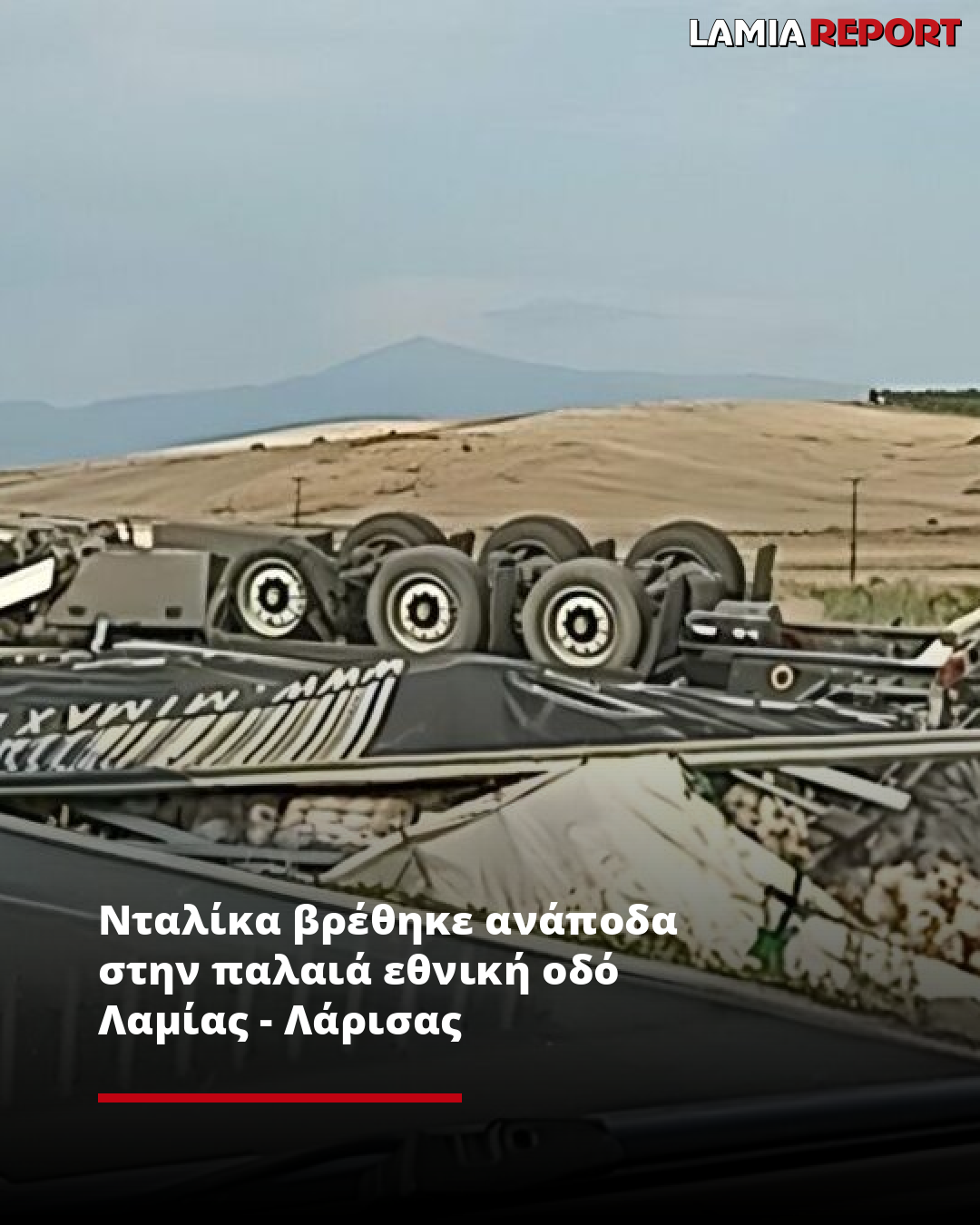 Νταλίκα βρέθηκε ανάποδα στην παλαιά εθνική οδό Λαμίας - Λάρισας