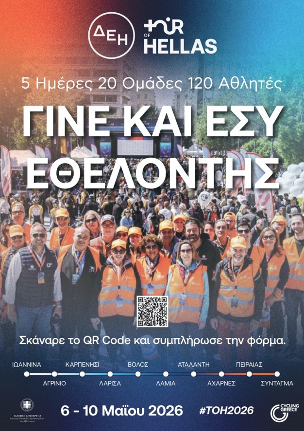 Γίνετε κι εσείς μέρος της ομάδας. Γίνετε εθελοντές στον ΔΕΗ Tour of Hellas 2026 και ζήστε την εμπειρία από την «πρώτη γραμμή».