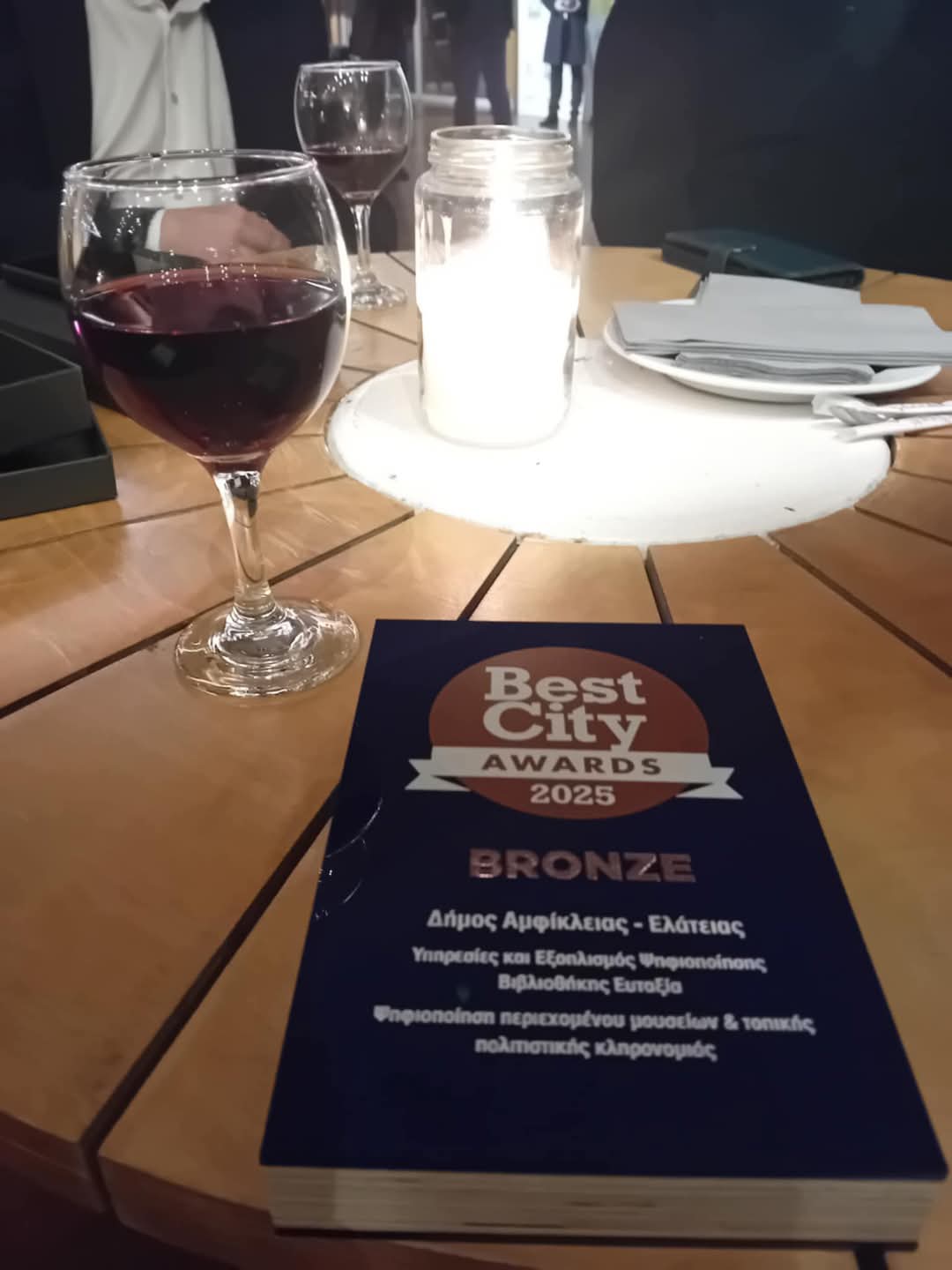 Υπερηφάνεια, τιμή μα και ευθύνη γεμίζει η σημαντική διάκριση του Δήμου Αμφίκλειας - Ελάτειας στα Best City Awards 2025, όπου έλαβε Bronze βραβείο για την υποψηφιότητα με το έργο: "Υπηρεσίες και Εξοπλισμός Ψηφιοποίησης Βιβλιοθήκης Ευταξία", στη σχετική κατηγορία!