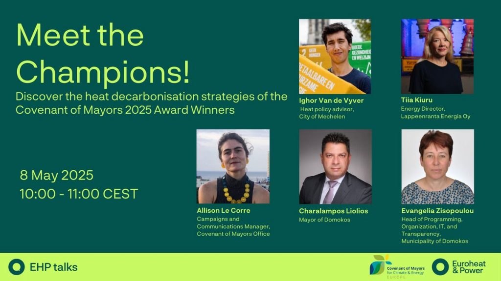 Το Σύμφωνο των Δημάρχων της ΕΕ, σε συνεργασία με την Euroheat & Power και το CEE Bankwatch Network, διοργανώνει διαδικτυακό σεμινάριο με τους τρεις νικητές του Βραβείου του Συμφώνου των Δημάρχων της ΕΕ για το 2025: τις πόλεις Mechelen (Βέλγιο), Lappeenranta (Φινλανδία) και Δομοκός (Ελλάδα).