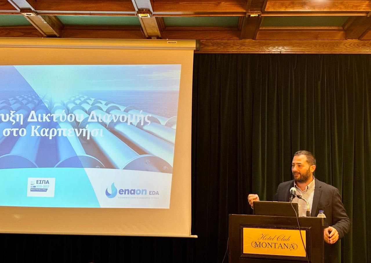 Πρωτοβουλία για την ενημέρωση της τοπικής κοινωνίας του Καρπενησίου αναφορικά με την έλευση του φυσικού αερίου στην περιοχή, ανέλαβαν η Ελληνική Εταιρεία Διανομής Αερίων Enaon EDA, θυγατρική της Enaon του ομίλου Italgas και η Περιφέρεια Στερεάς Ελλάδας. Η τροφοδότηση του πρώτου τμήματος της πόλης με φυσικό αέριο προγραμματίζεται για τον Σεπτέμβριο του 2025, παρέχοντας σε νοικοκυριά και επιχειρήσεις τη δυνατότητα πρόσβασης σε μια καθαρότερη, πιο οικονομική και πιο αποδοτικήπηγή ενέργειας ήδη από τον φετινό χειμώνα.