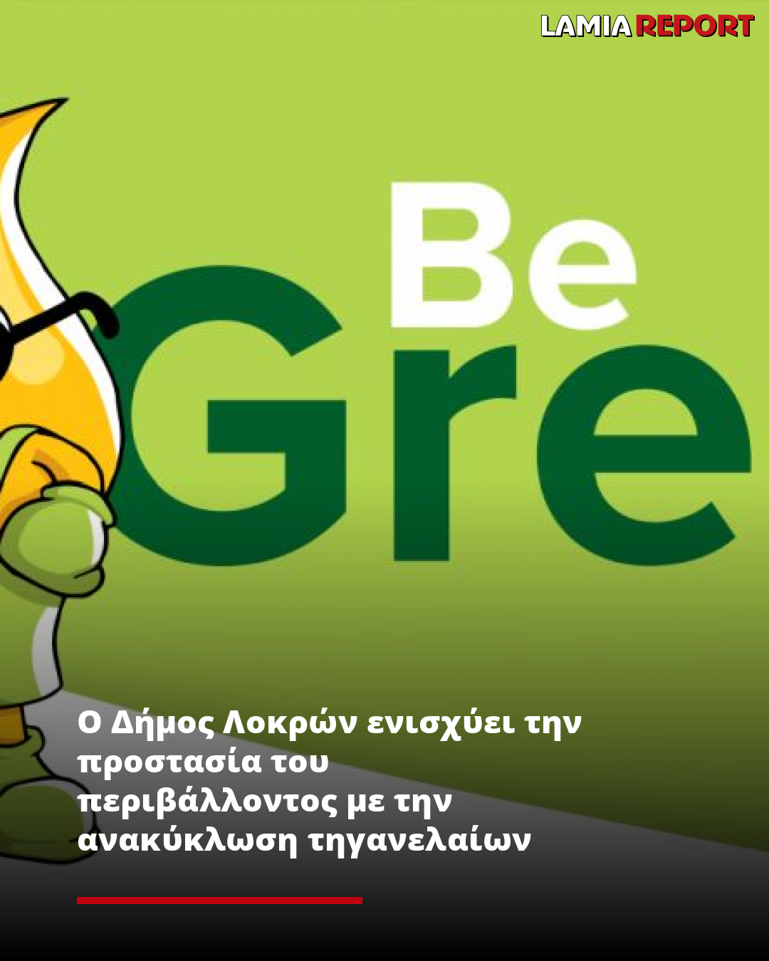 Ο Δήμος Λοκρών κάνει ένα ακόμη βήμα προς την προστασία του περιβάλλοντος και τη βιώσιμη ανάπτυξη, προχωρώντας στην εφαρμογή ενός ολοκληρωμένου προγράμματος διαχείρισης αποβλήτων. Στο πλαίσιο αυτό, εντάσσεται η συλλογή χρησιμοποιημένων βρώσιμων ελαίων και λιπών (τηγανέλαια), αποτρέποντας τη ρύπανση του υδροφόρου ορίζοντα και των αποχετεύσεων.