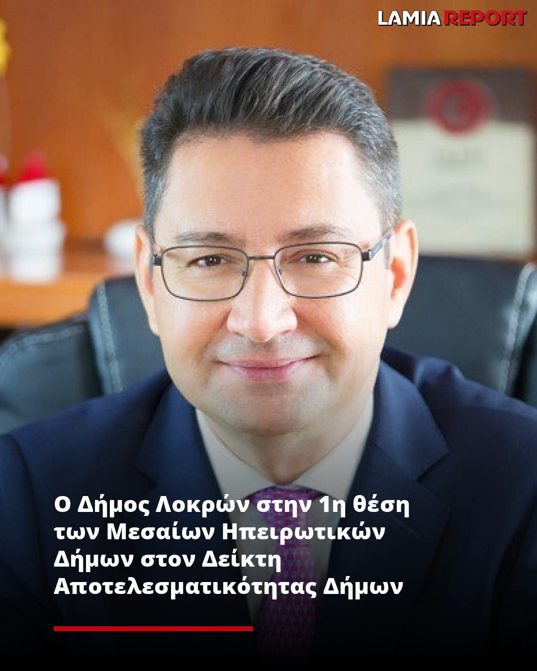 Ο Δήμος Λοκρών στην 1η θέση των Μεσαίων Ηπειρωτικών Δήμων στον Δείκτη Αποτελεσματικότητας Δήμων