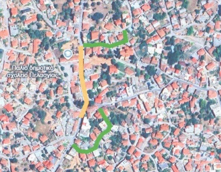 Επαρχιακής οδού Ραχών - Τμήμα της οδού έμπροσθεν κεντρικής πλατείας Πελασγίας.