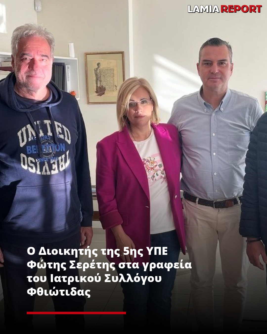 Στη Λαμία και στα γραφεία του Ιατρικού Συλλόγου Φθιώτιδας, βρέθηκε την Κυριακή 6 Απριλίου 2025 ο Διοικητής της 5ης ΥΠΕ Φώτης Σερέτης.