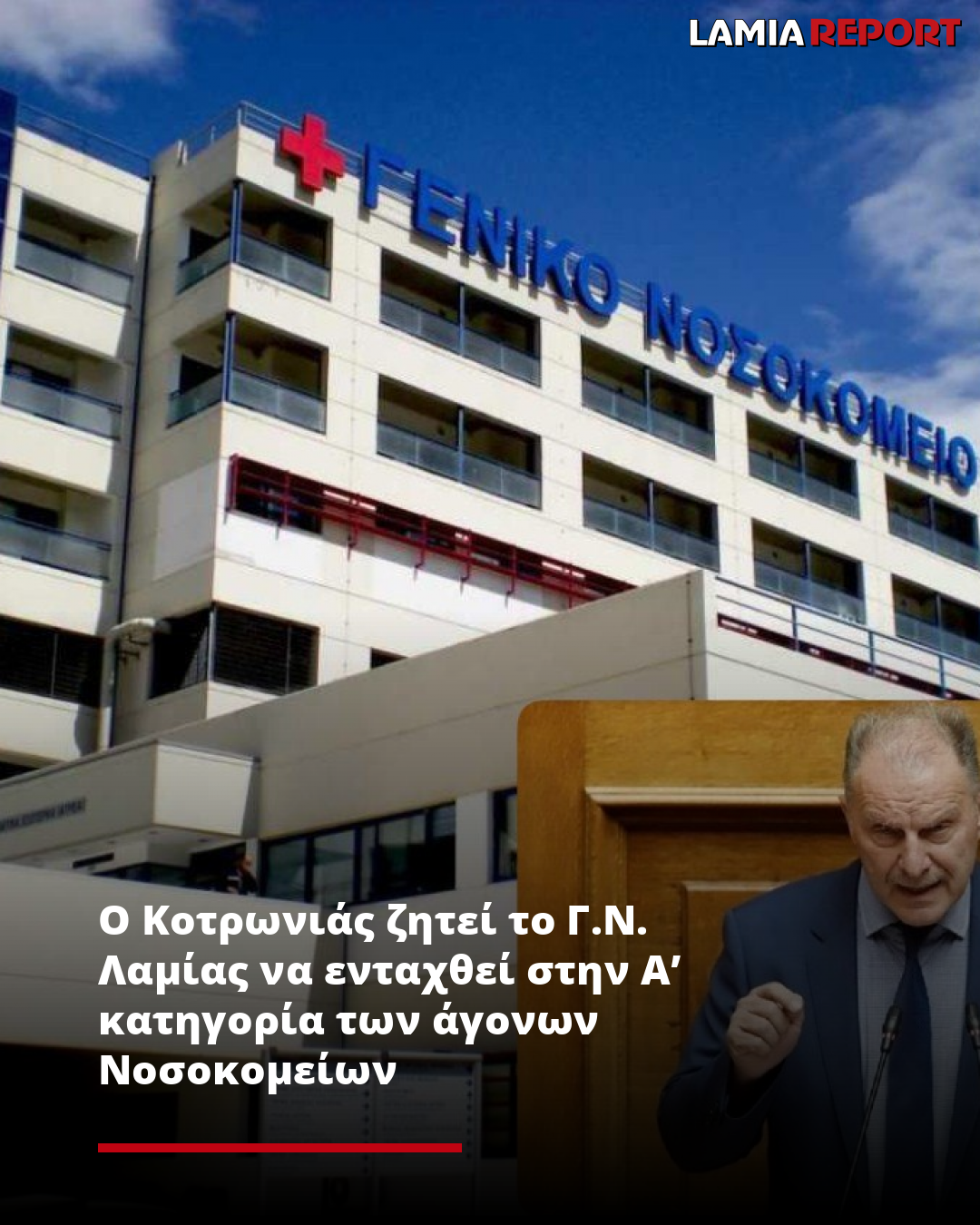 Ο Κοτρωνιάς ζητεί το Γ.Ν. Λαμίας να ενταχθεί στην Α’ κατηγορία των άγονων Νοσοκομείων