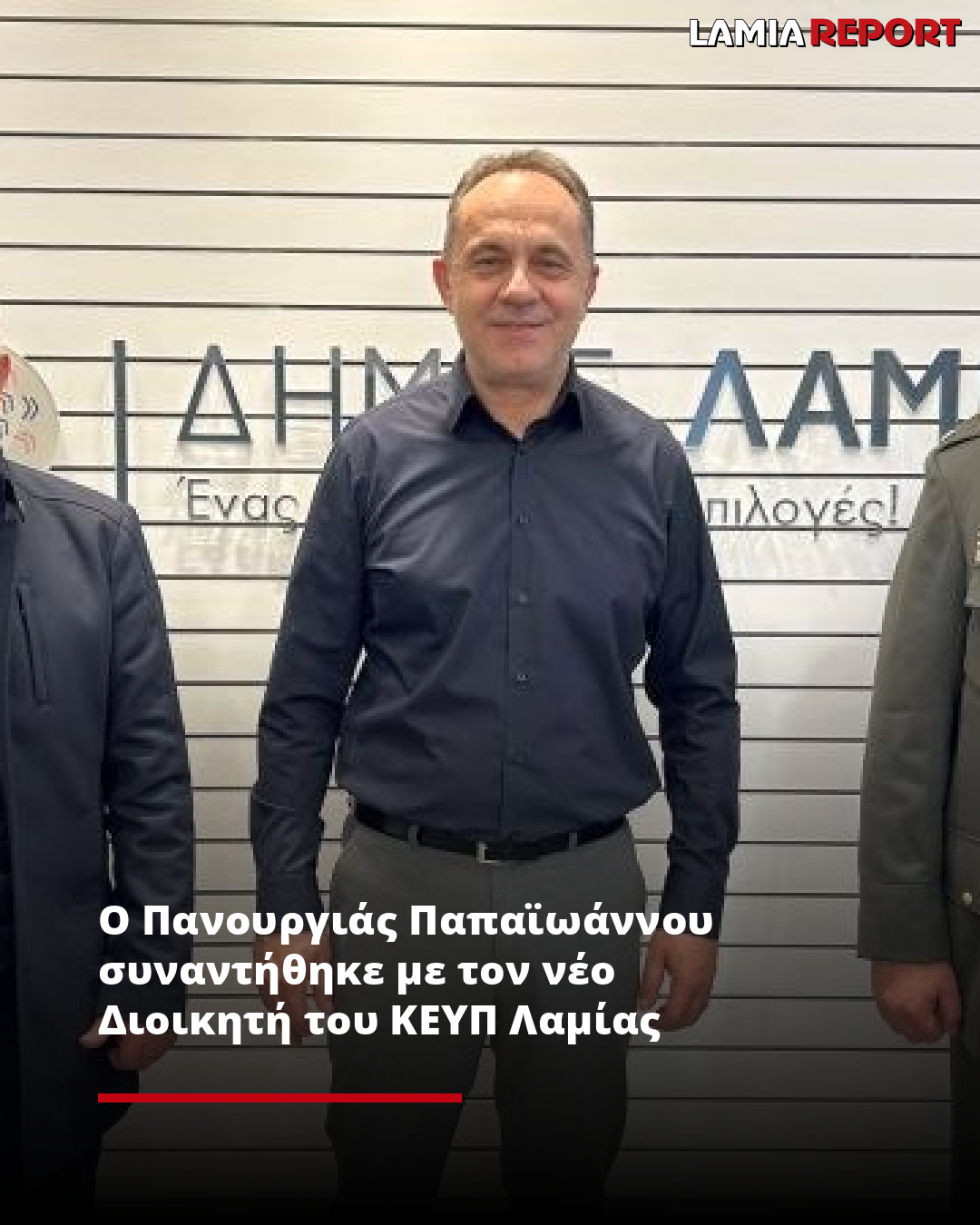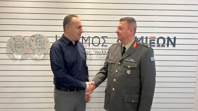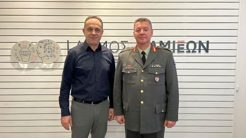 Ο Δήμαρχος Λαμιέων, Πανουργιάς Παπαϊωάννου, πραγματοποίησε στο Δημαρχείο, το πρωί της Τετάρτης 5 Φεβρουαρίου, συνάντηση με τον νέο Διοικητή του Κέντρου Εκπαίδευσης Υλικού Πολέμου (ΚΕΥΠ) Λαμίας, Ταξίαρχο Πέτρο Περιμένη, συνοδευόμενος από τον απερχόμενο Διοικητή, Υποστράτηγο ε.α Αναστάσιο Μαυρομάτη.